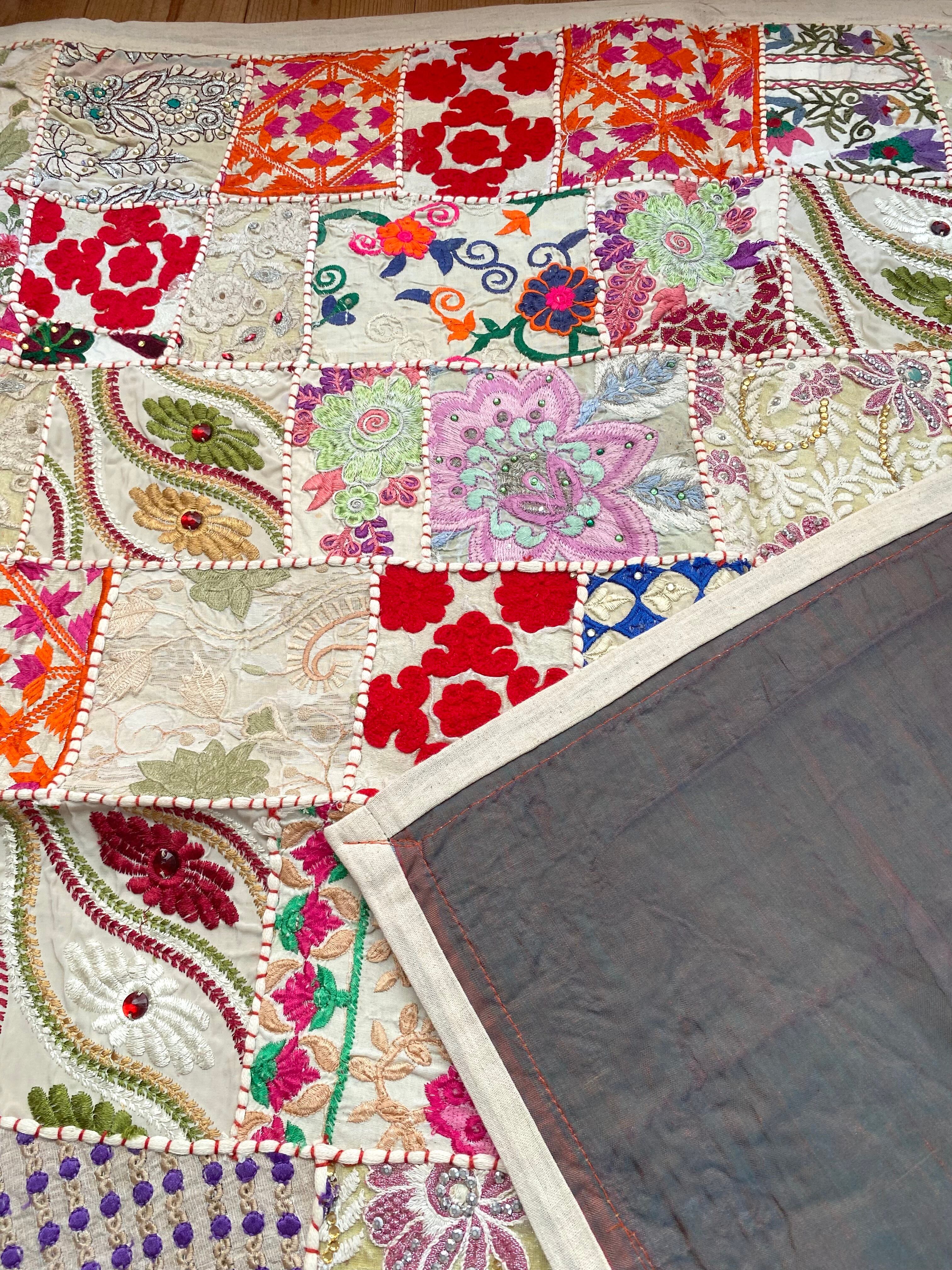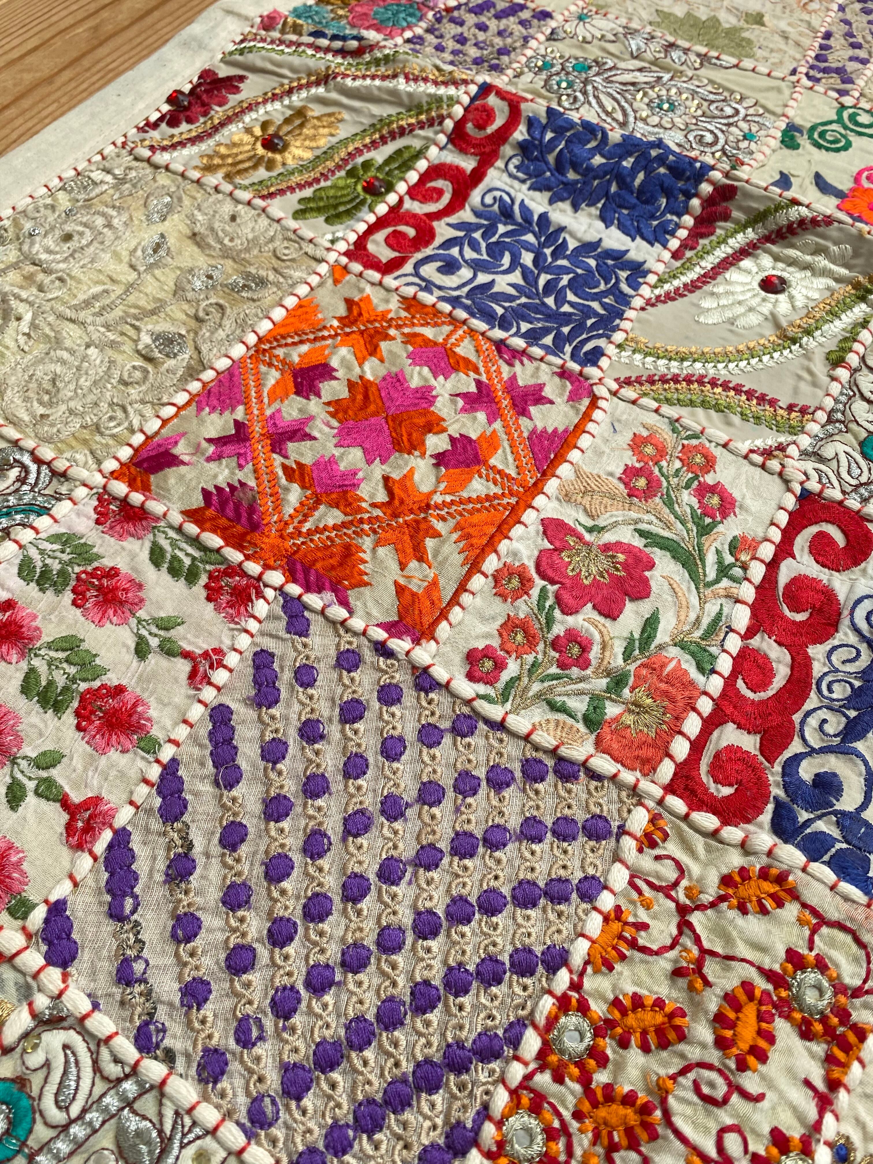 ホワイトパールさん/ザリ刺繍タペストリーラグ