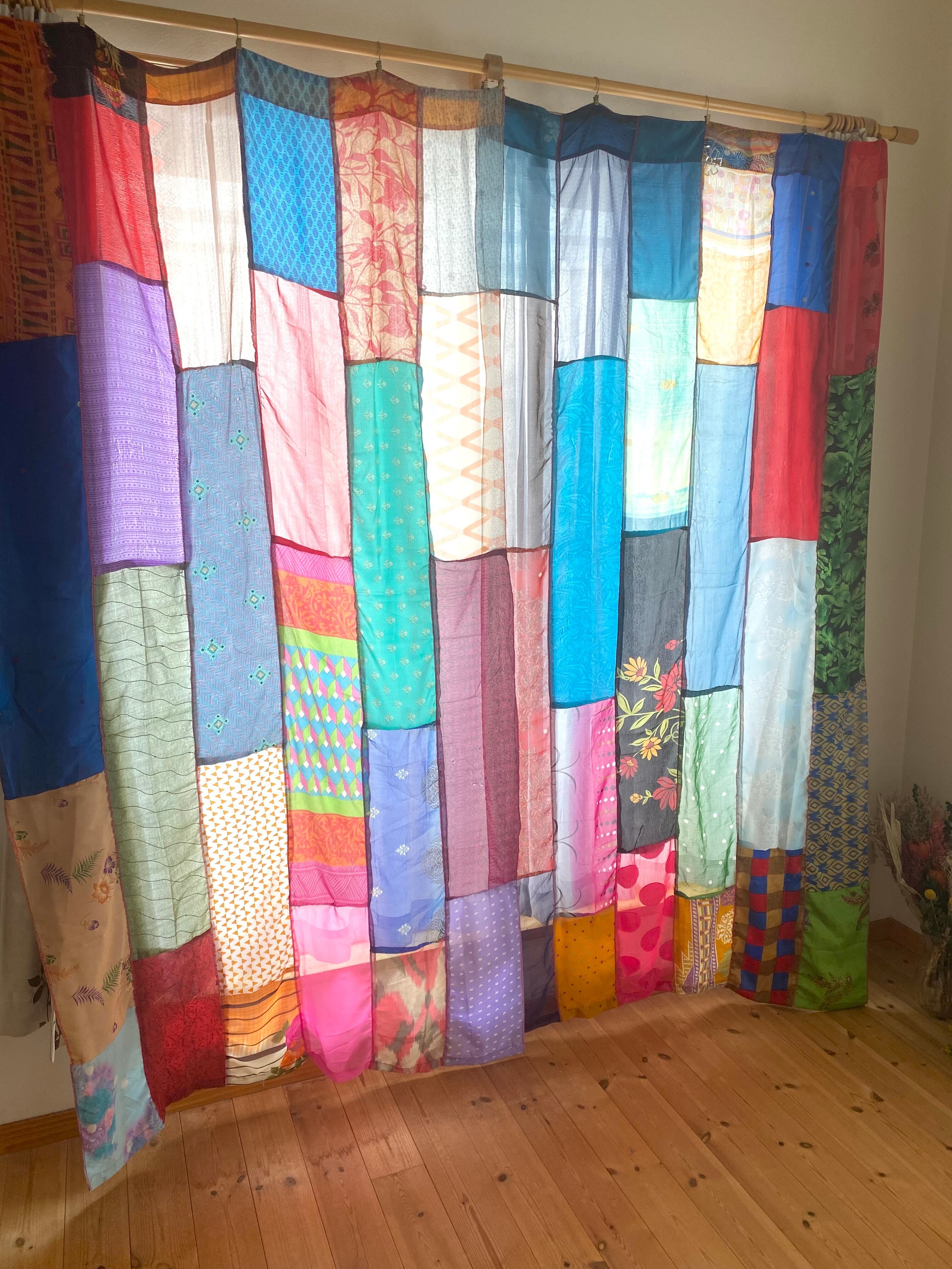 ヴィンテージサリーで出来たパッチワークシルクカーテン