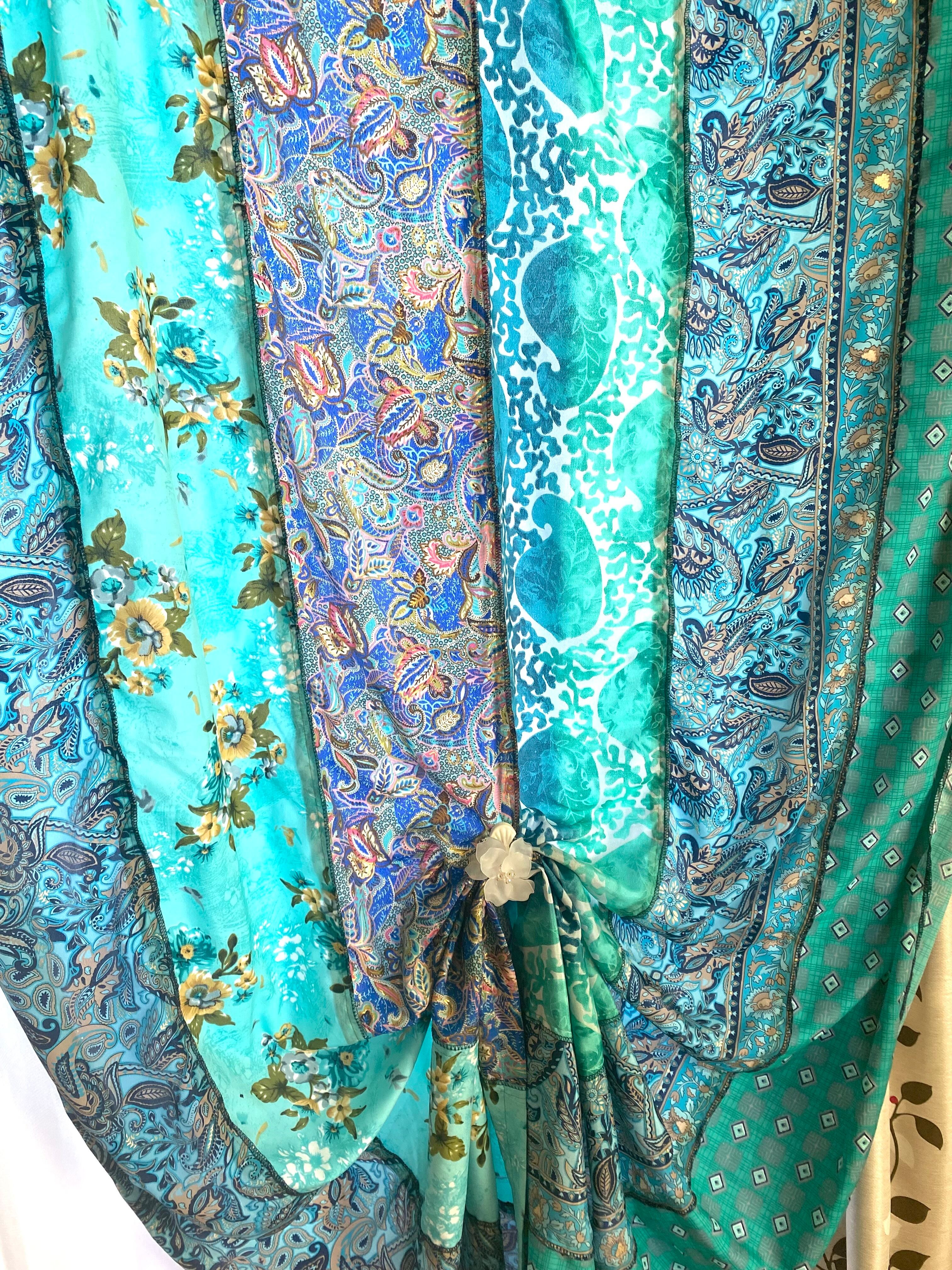 ヴィンテージサリーで出来たパッチワークシルクカーテン