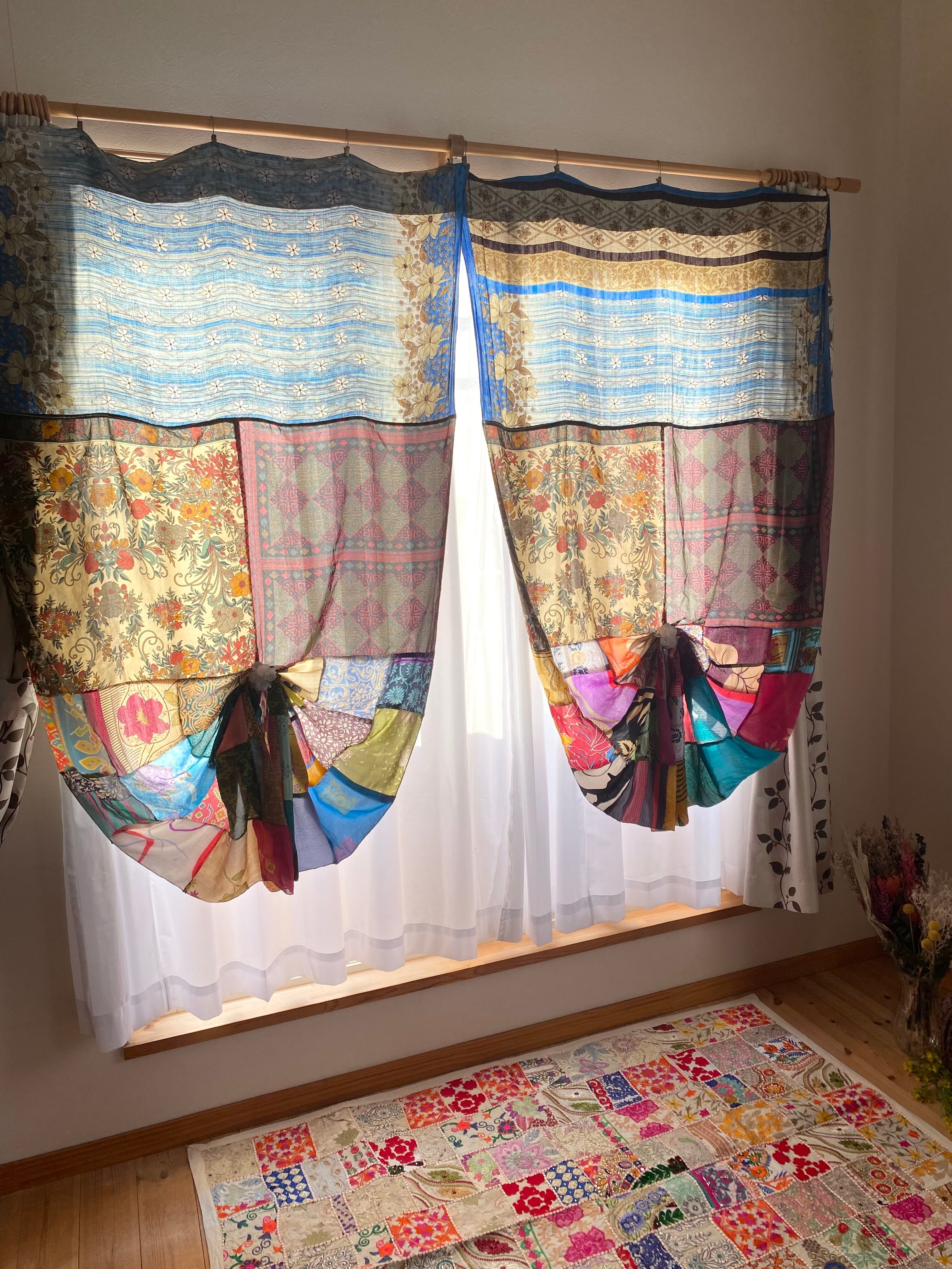 ※カーテンとしては新品未使用ですが、布はヴィンテージスカーフを使っております。