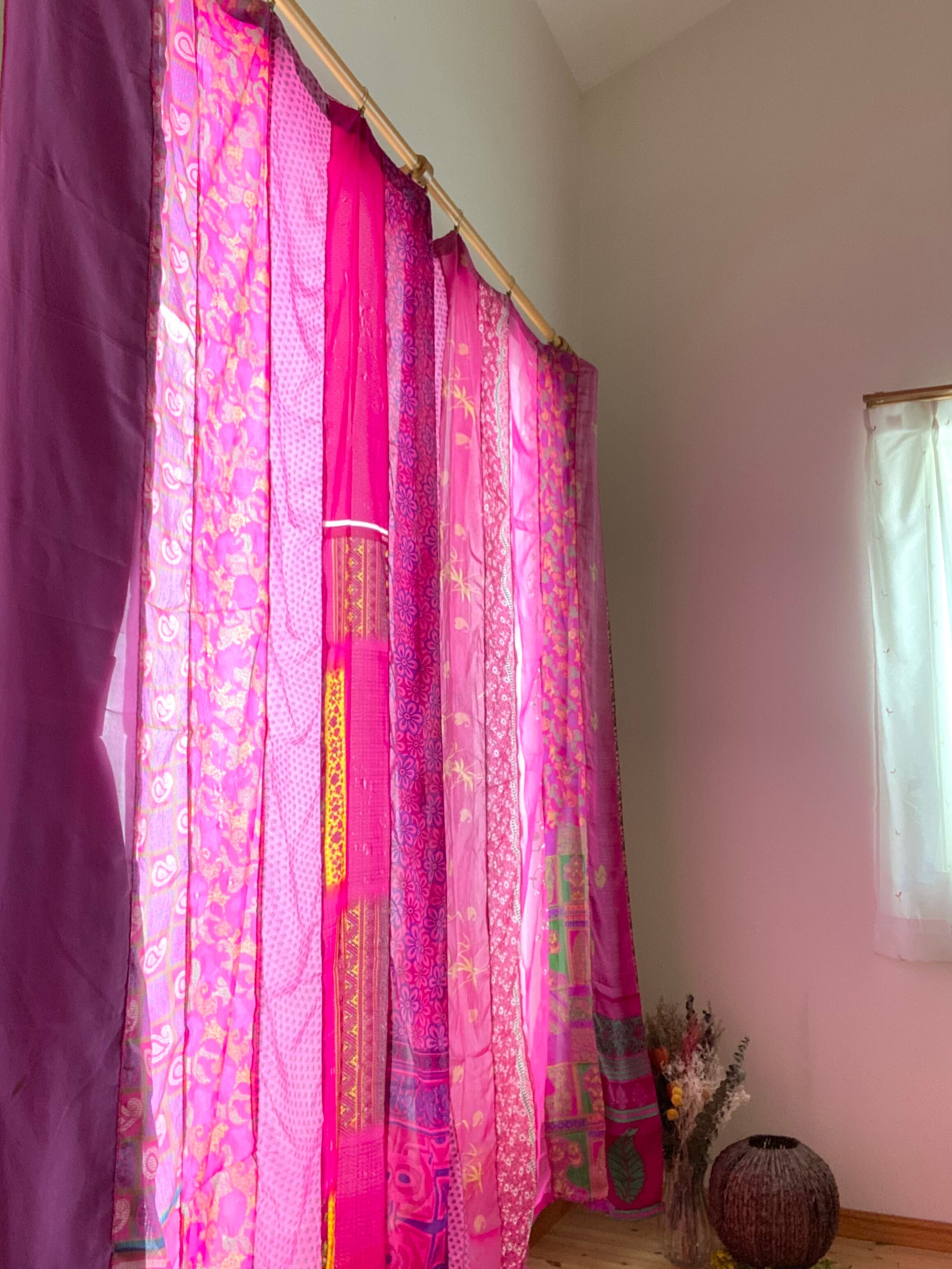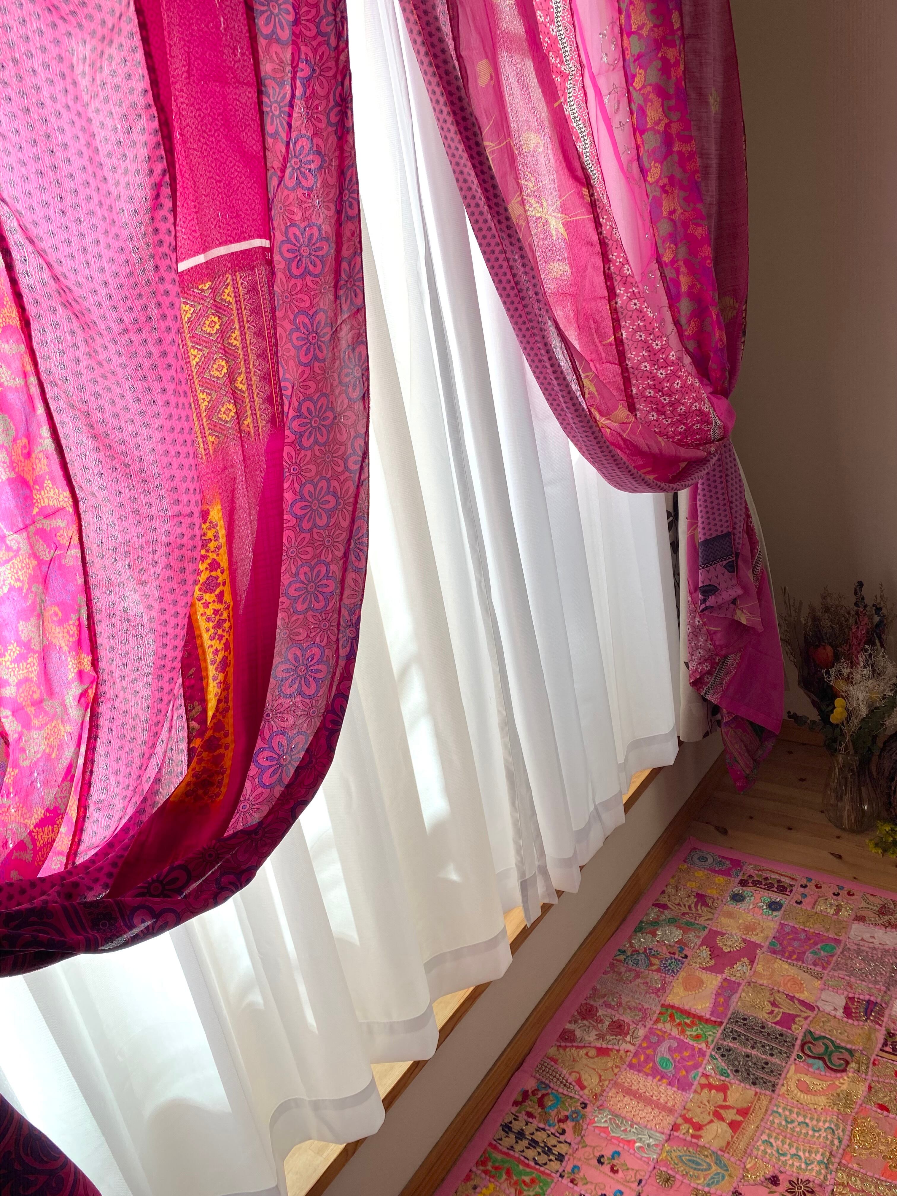 ※カーテンとしては新品未使用ですが、布はヴィンテージサリーを使っております。