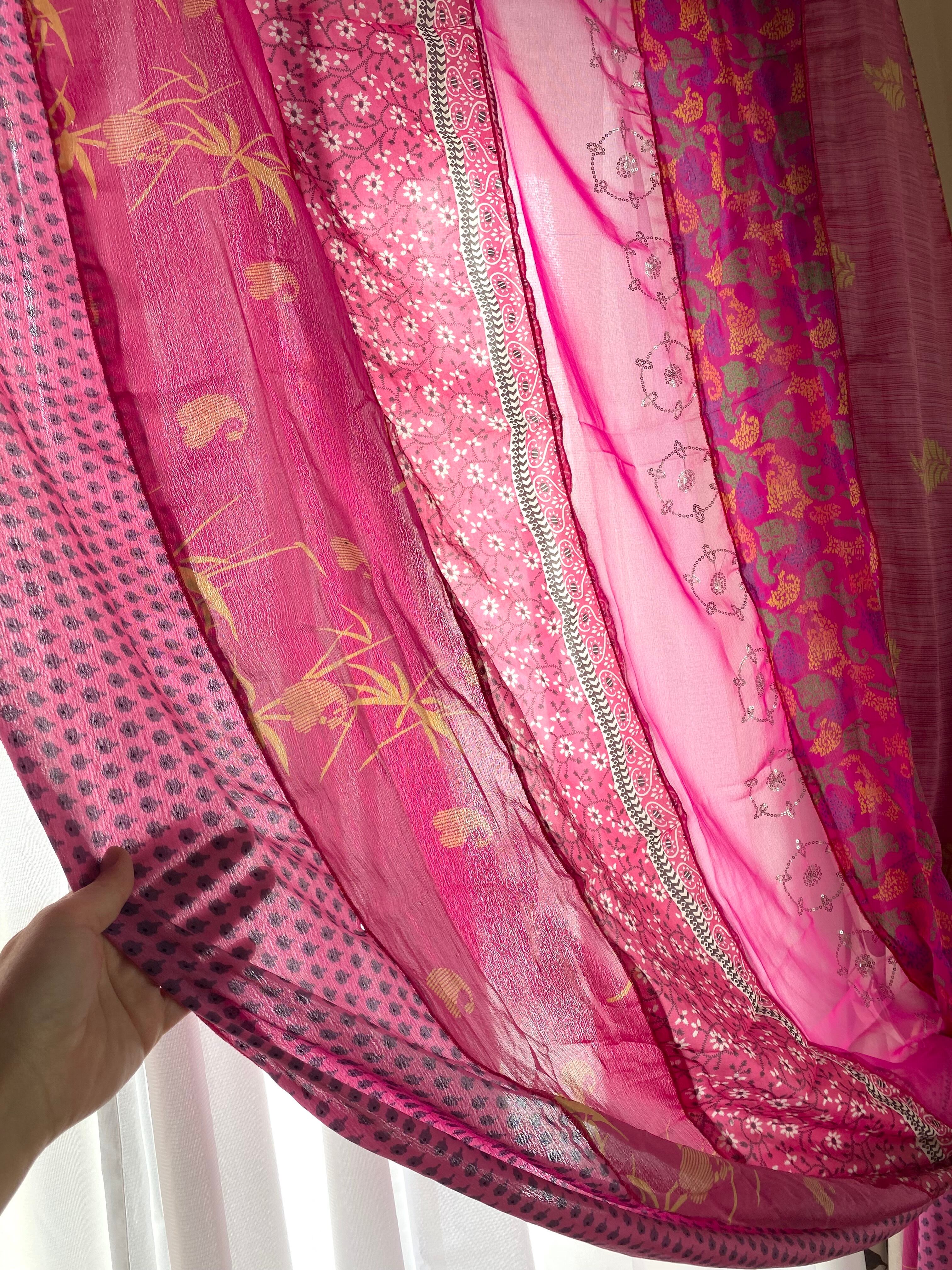 ヴィンテージサリーで出来たパッチワークシルクカーテン