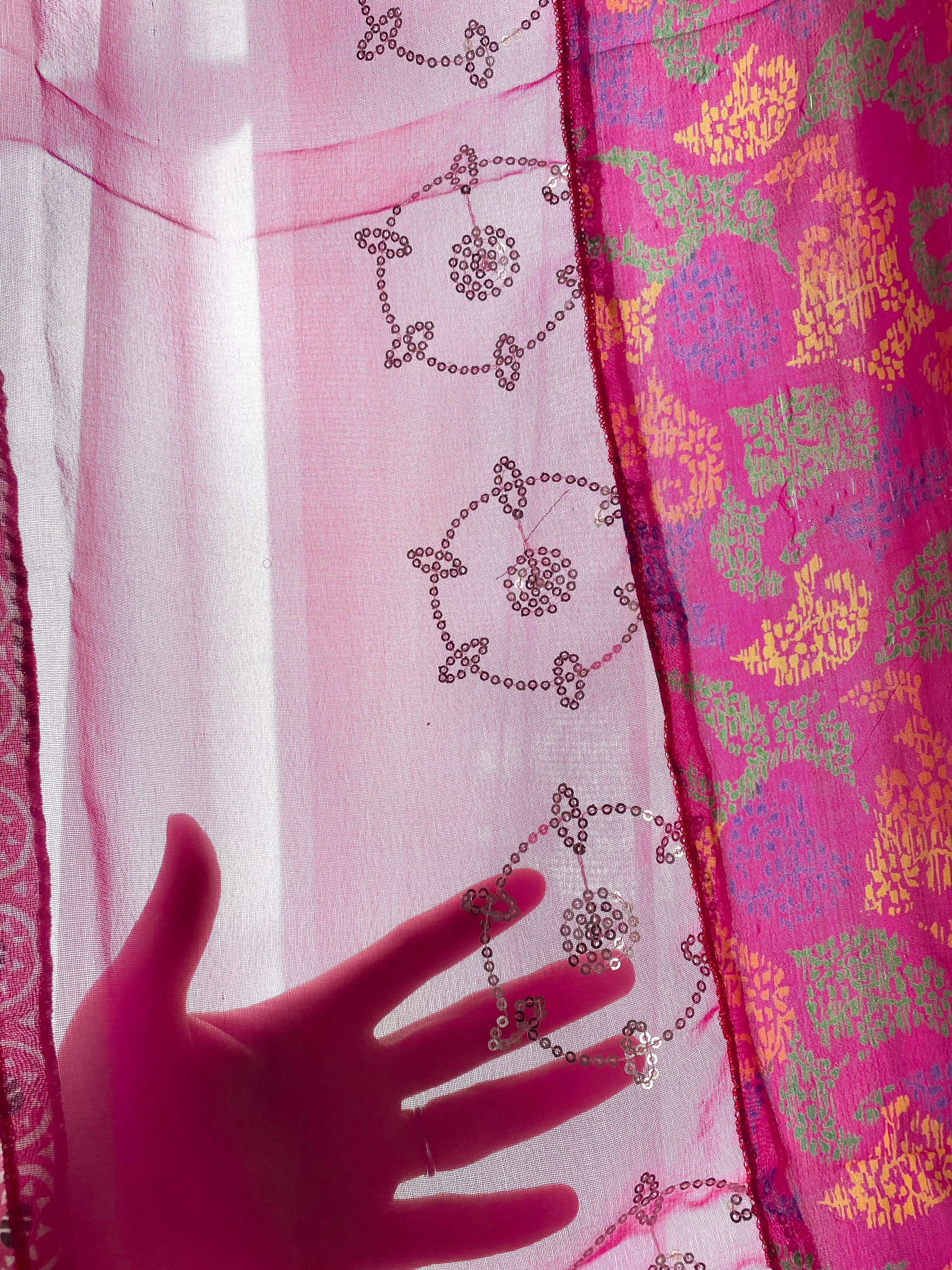 インドの女性が大切に扱っていたシルクのサリーを
