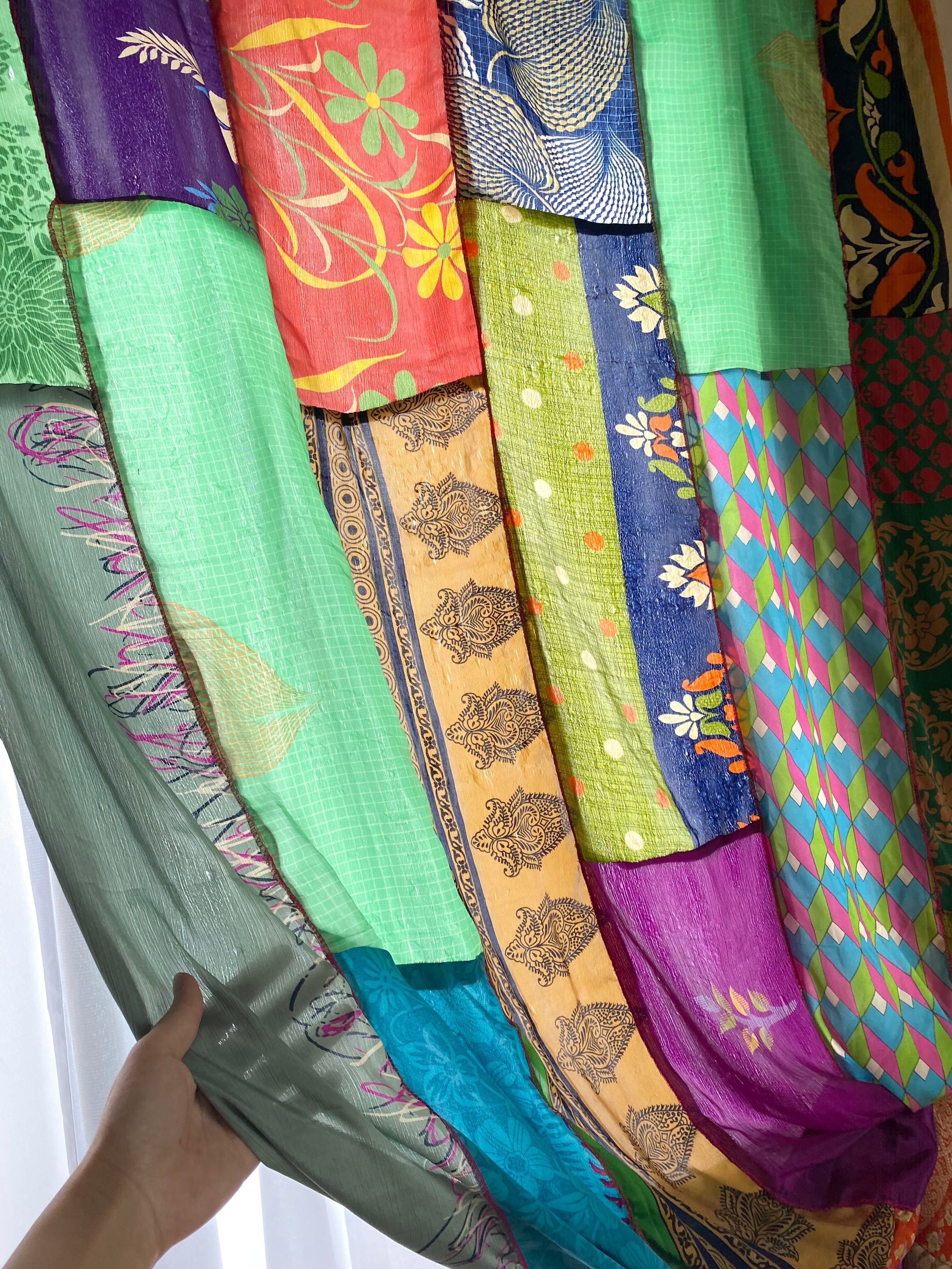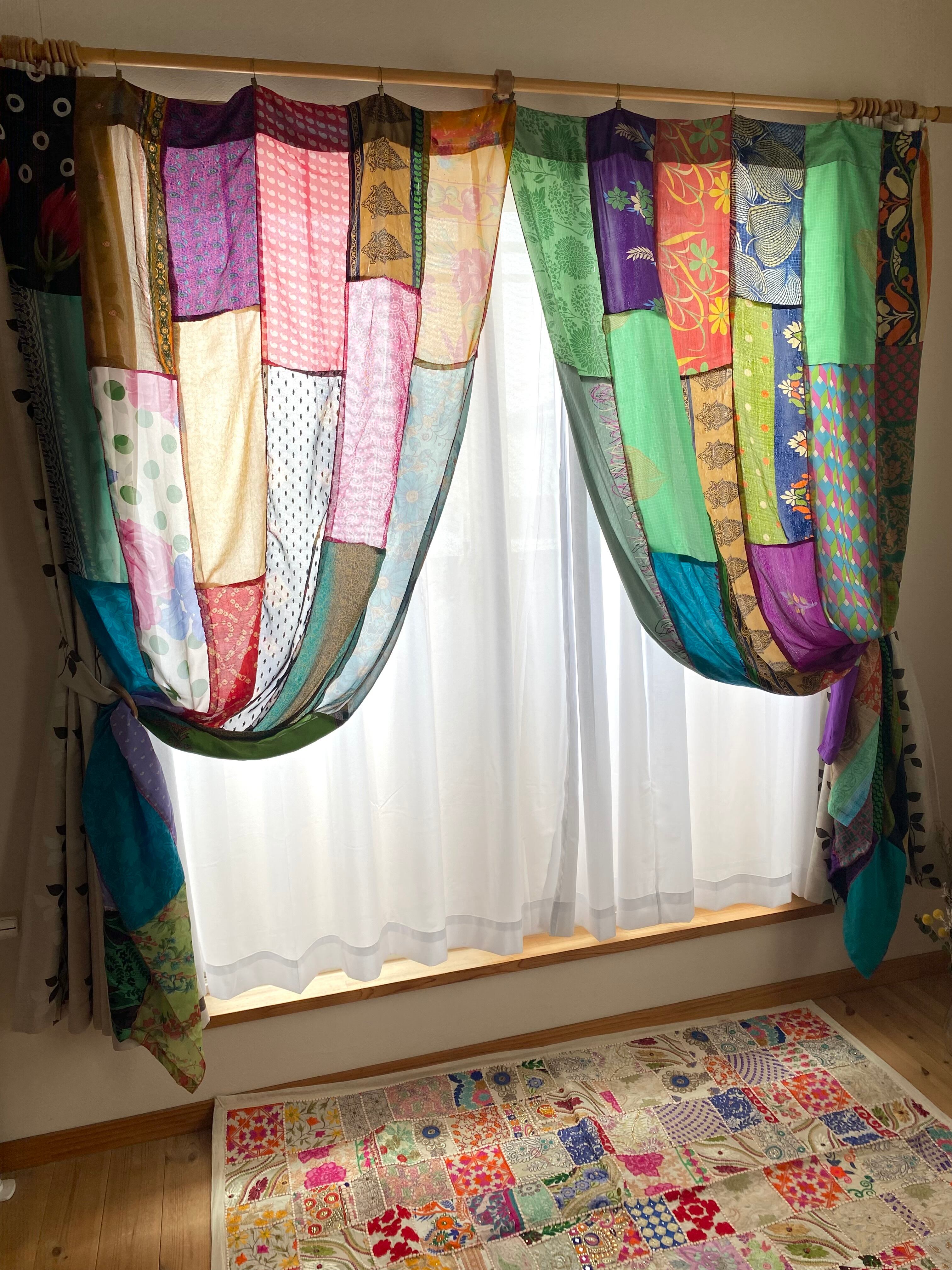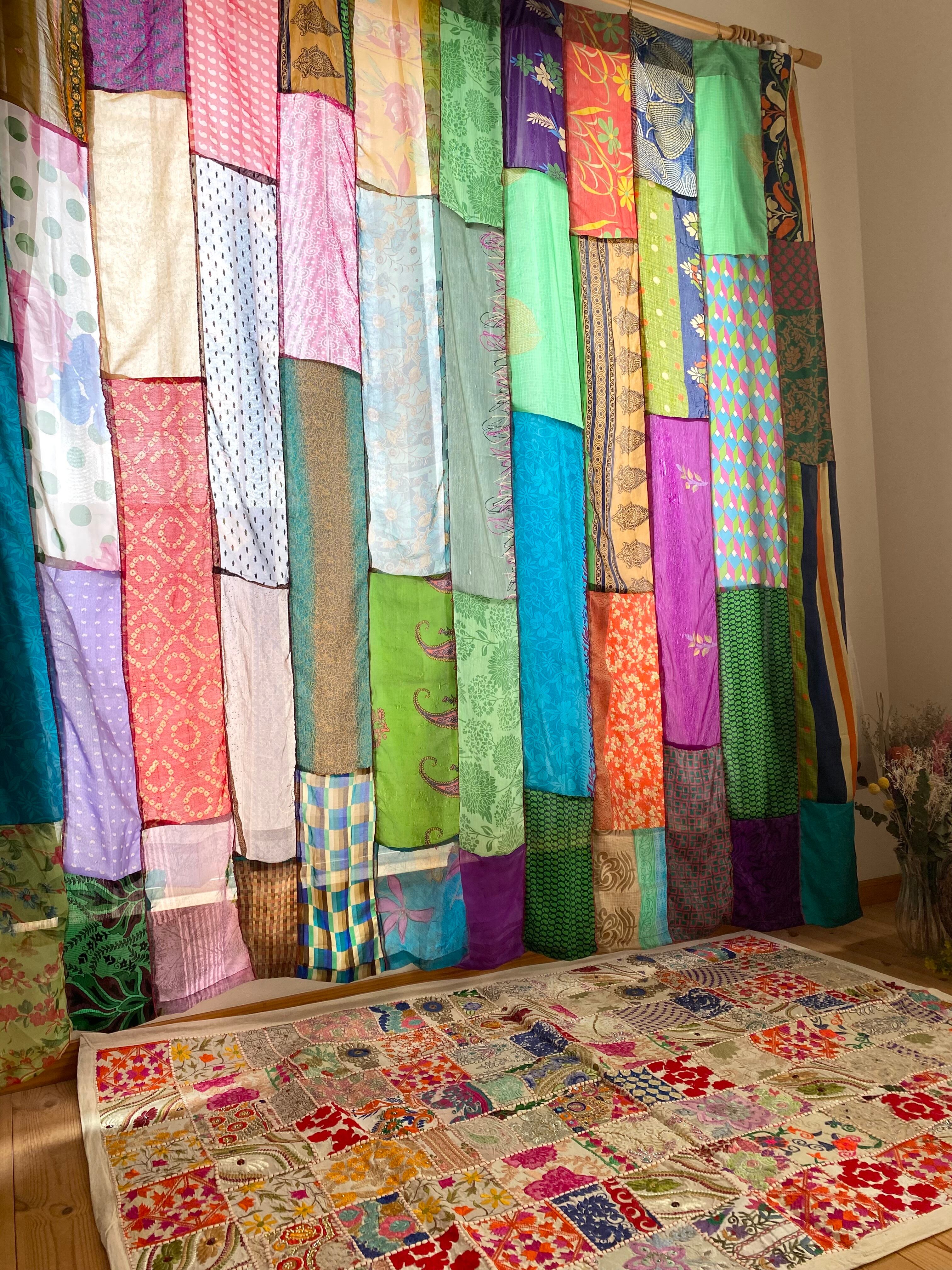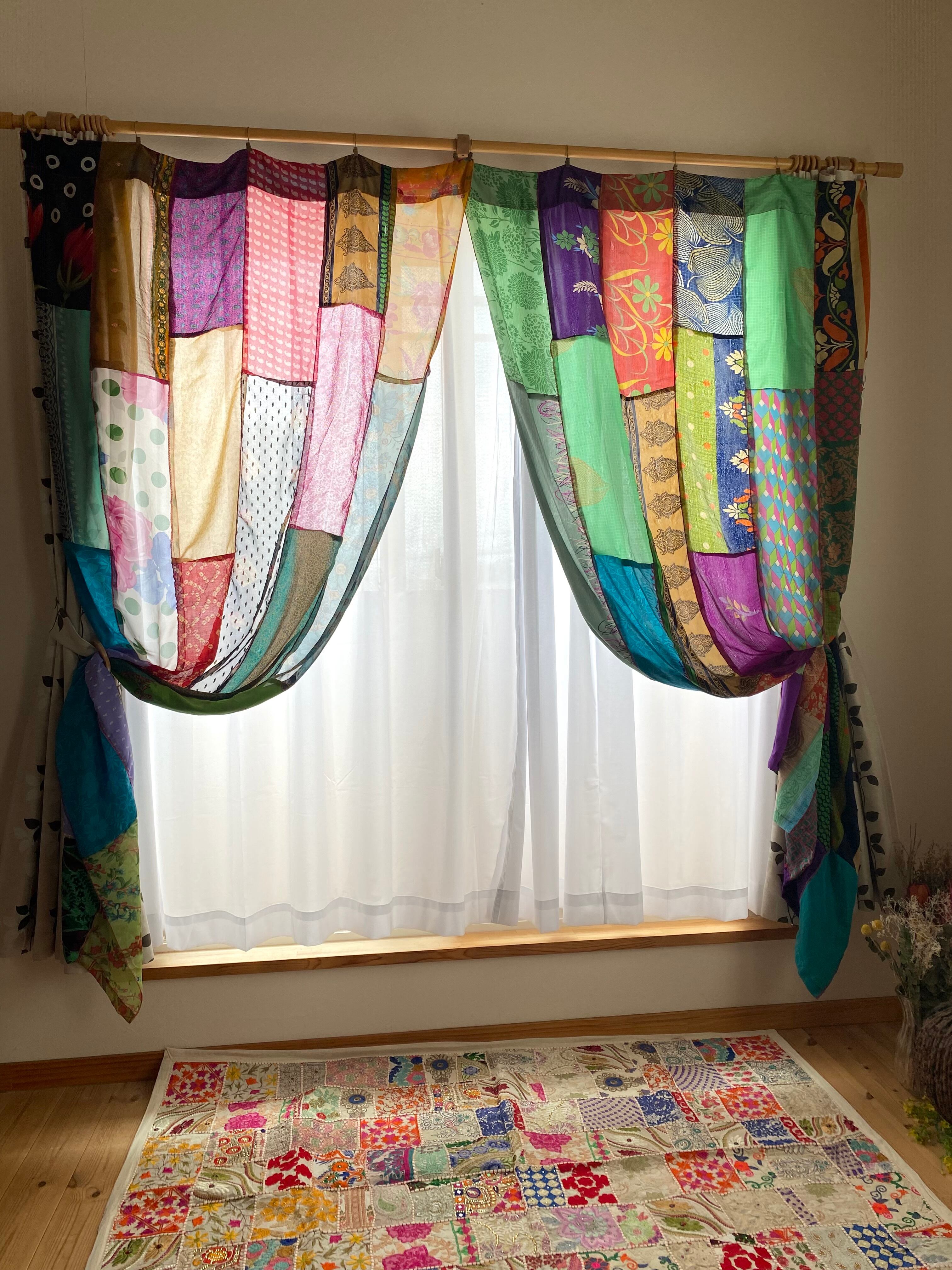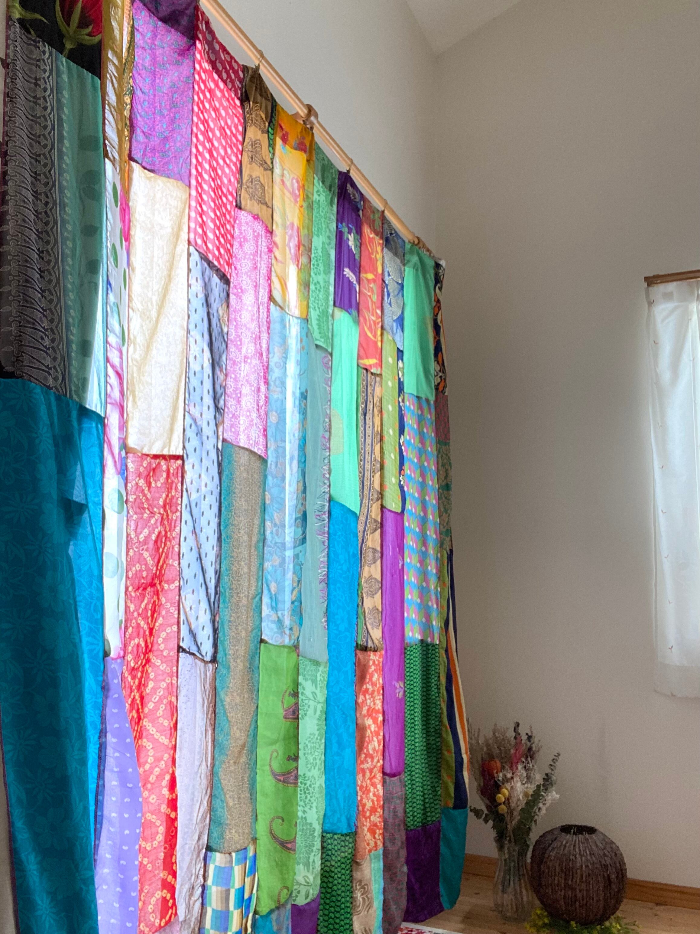 ヴィンテージサリーで出来たパッチワークシルクカーテン