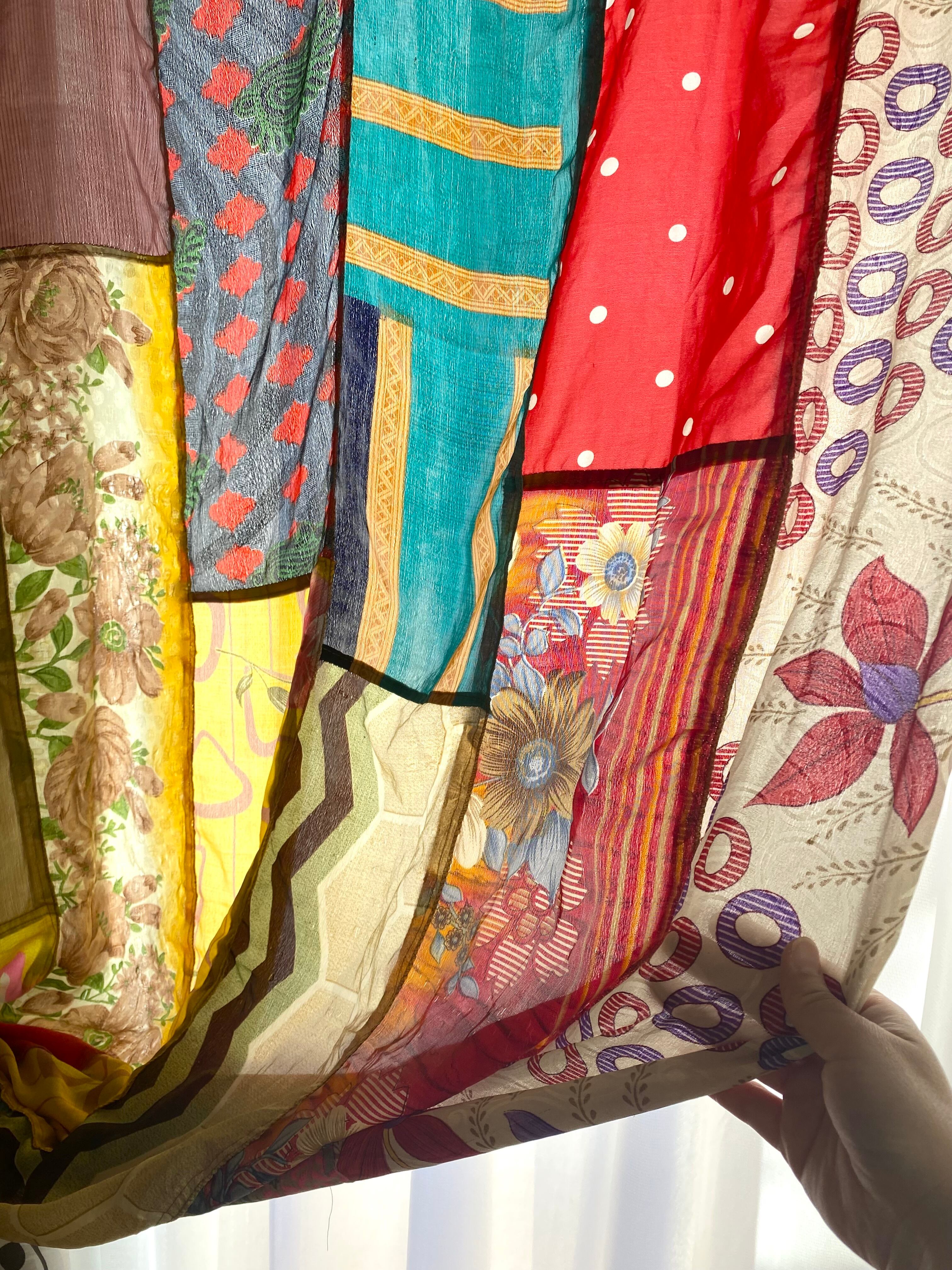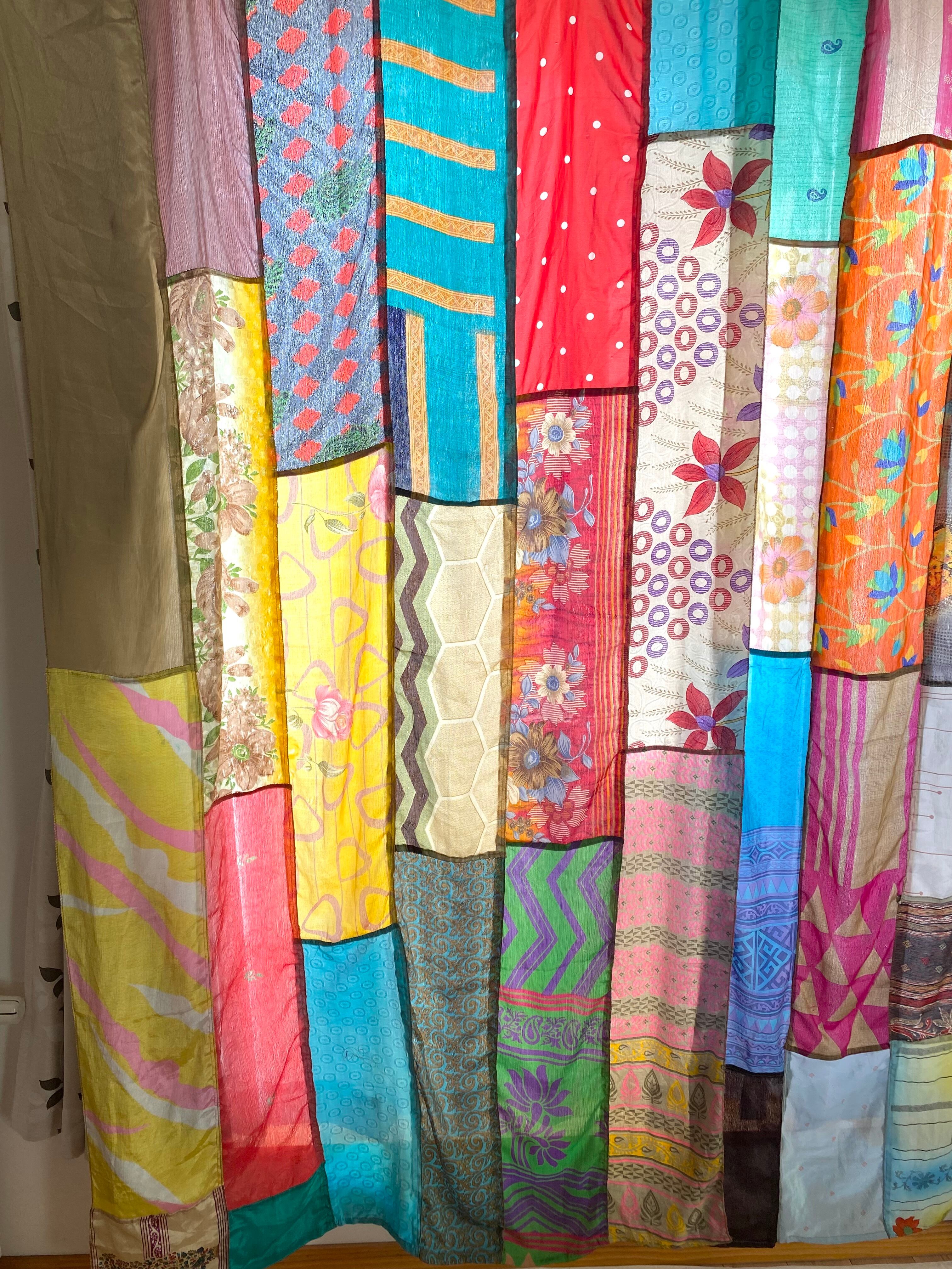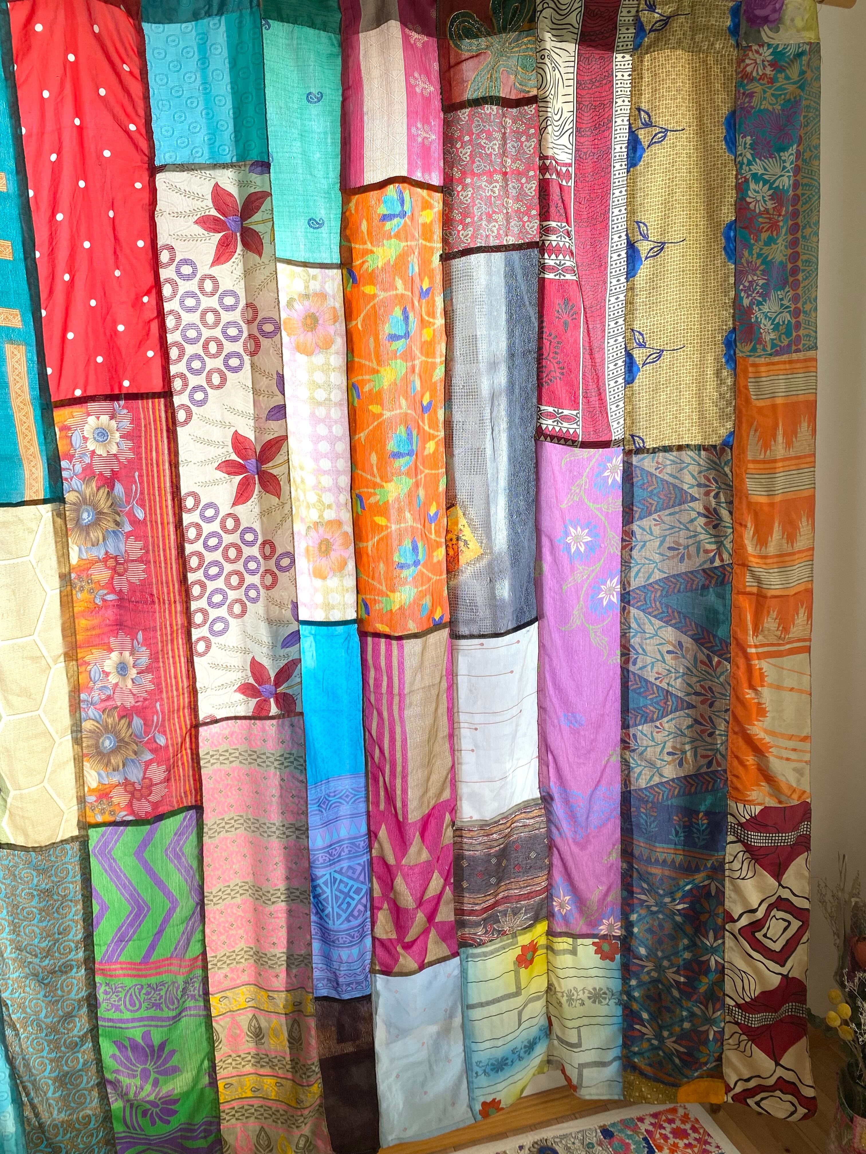 ヴィンテージサリーで出来たパッチワークシルクカーテン