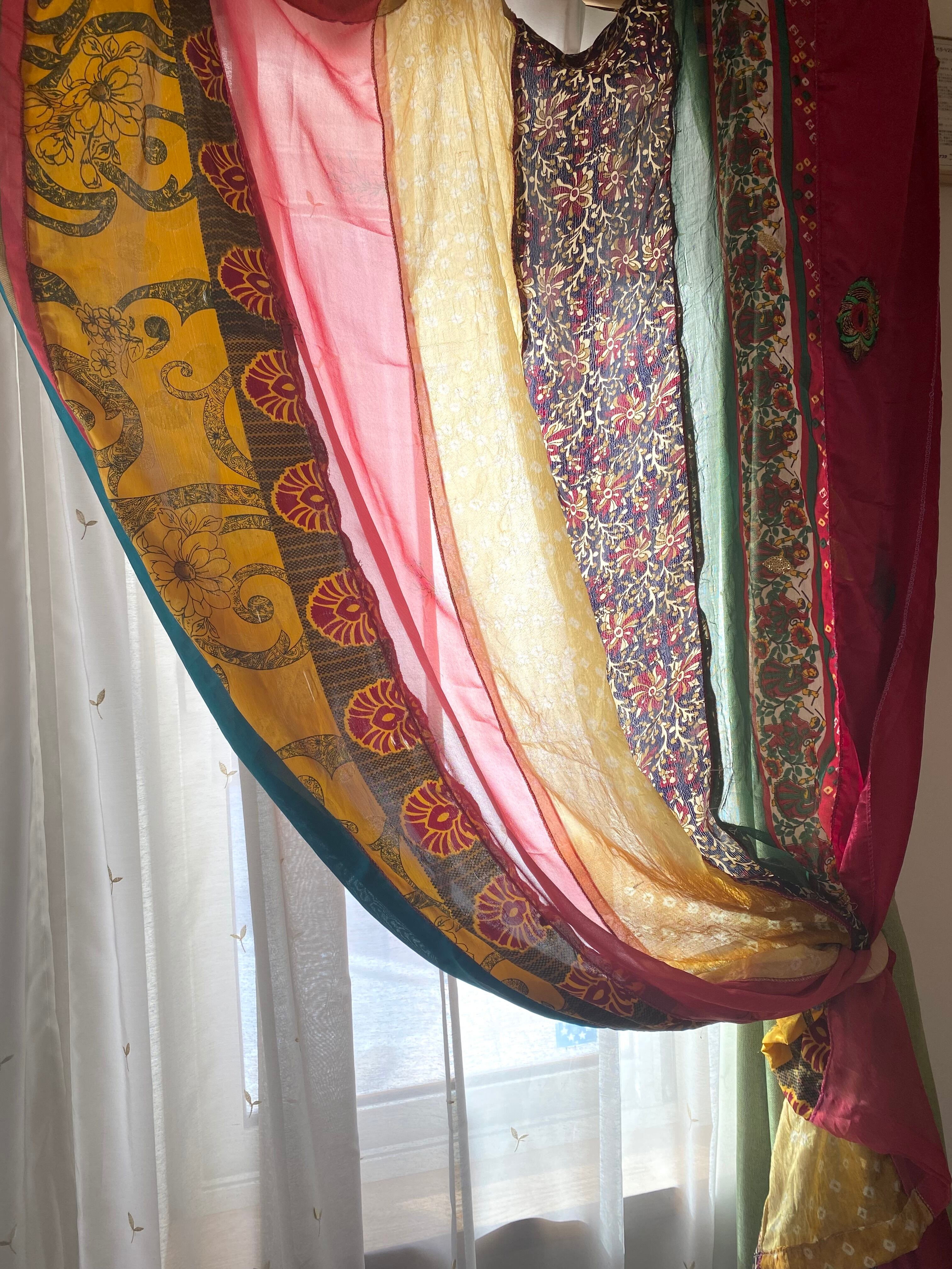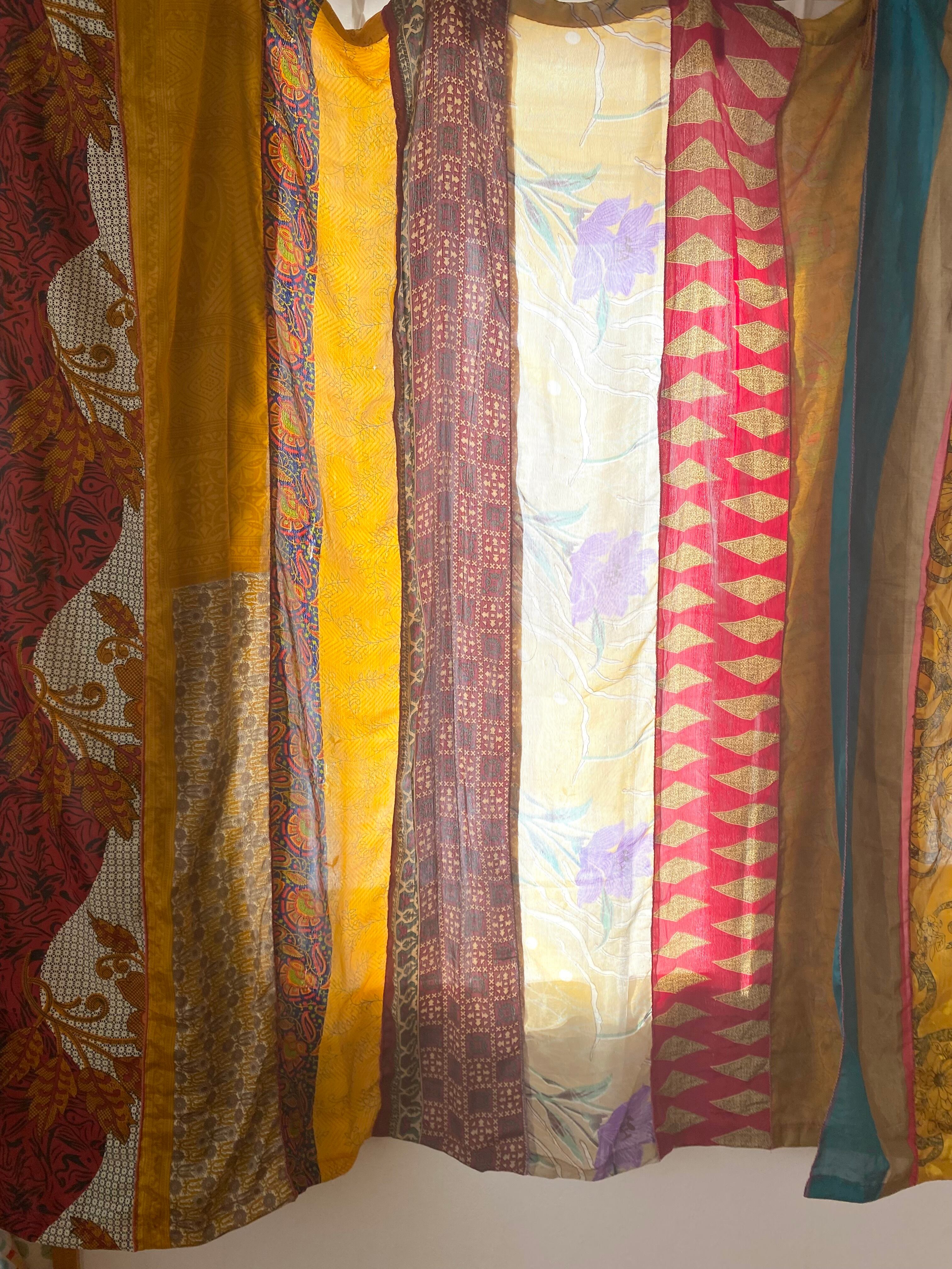 ヴィンテージサリーで出来たパッチワークシルクカーテン
