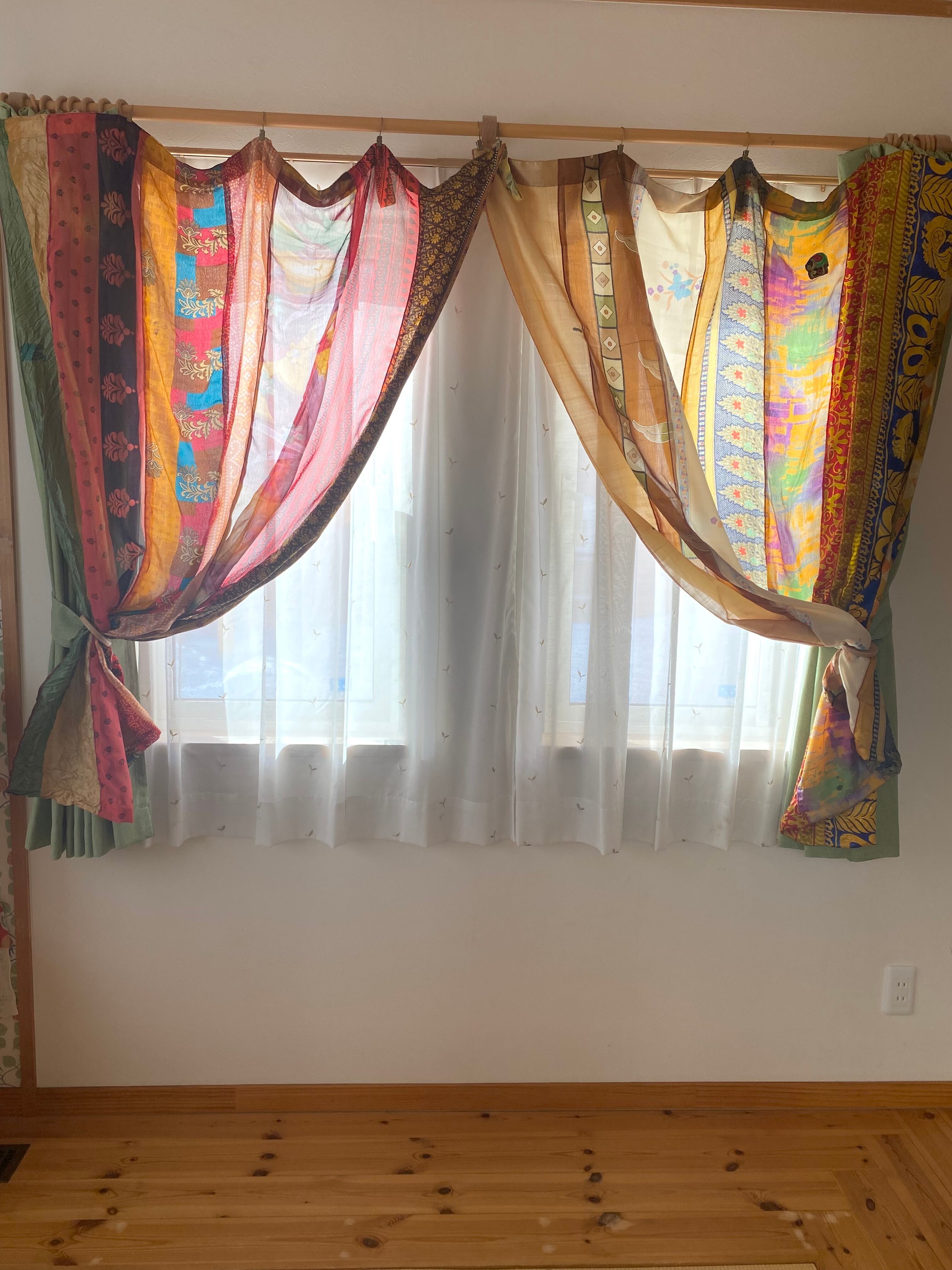 ※カーテンとしては新品未使用ですが、布はヴィンテージサリーを使っております。