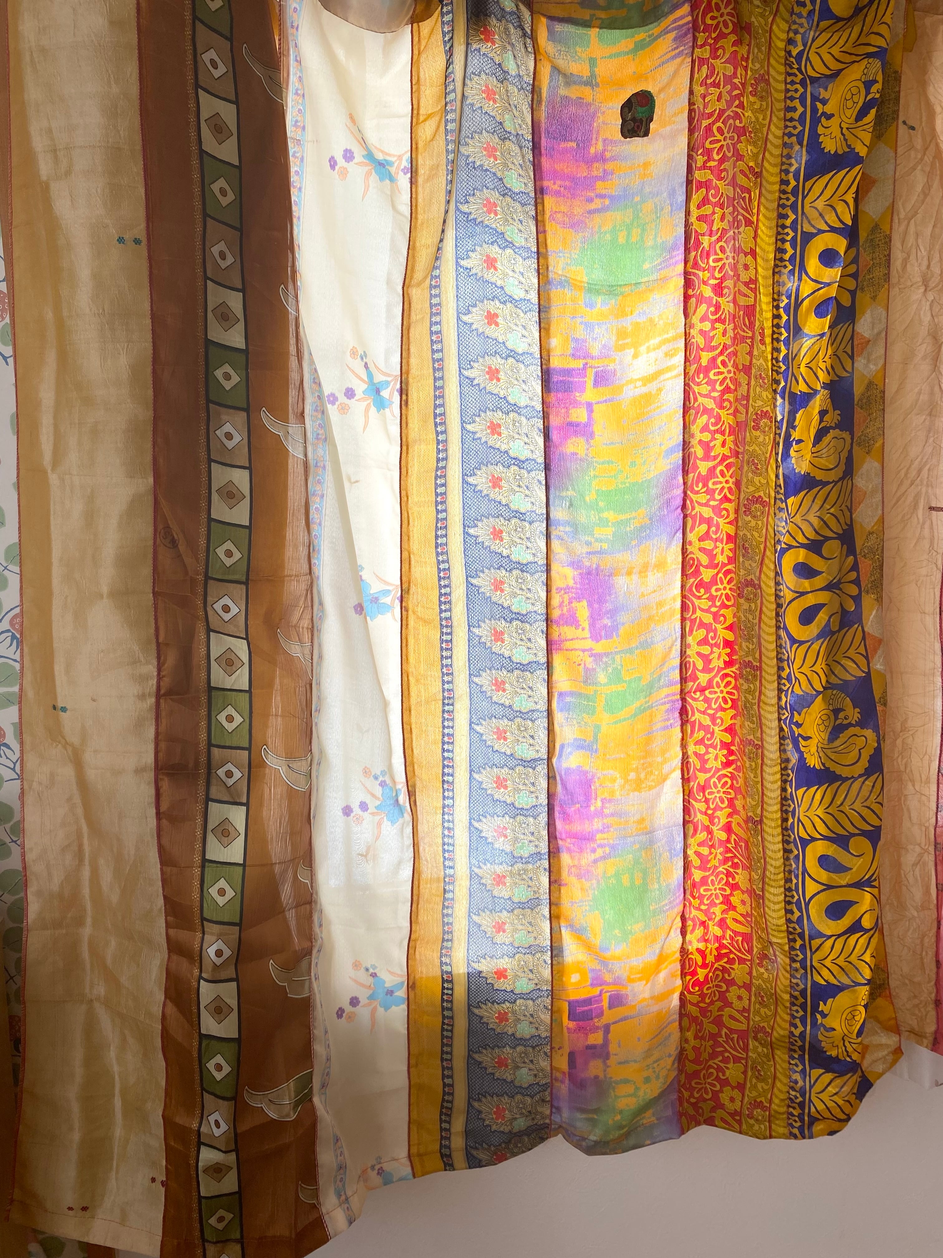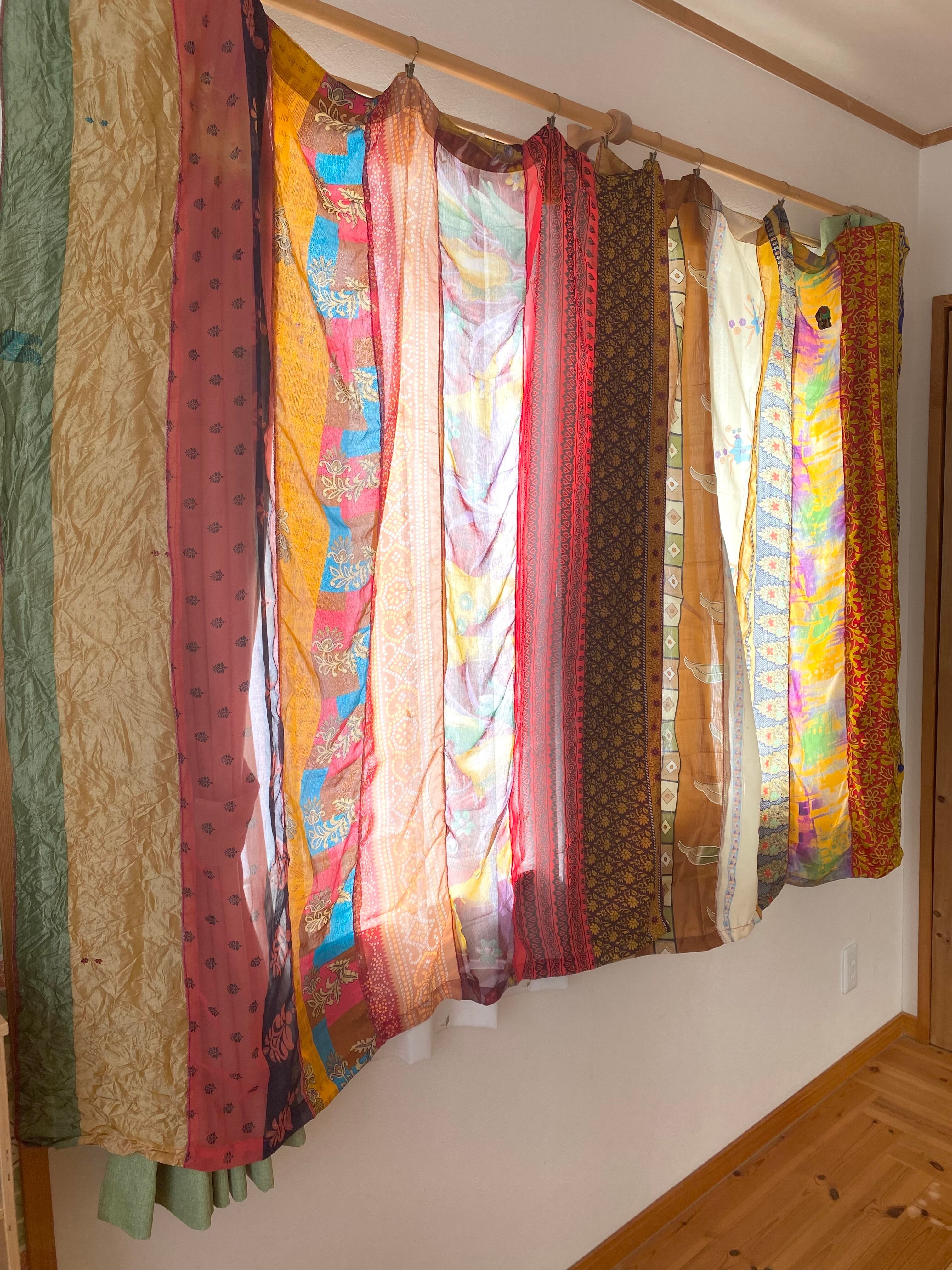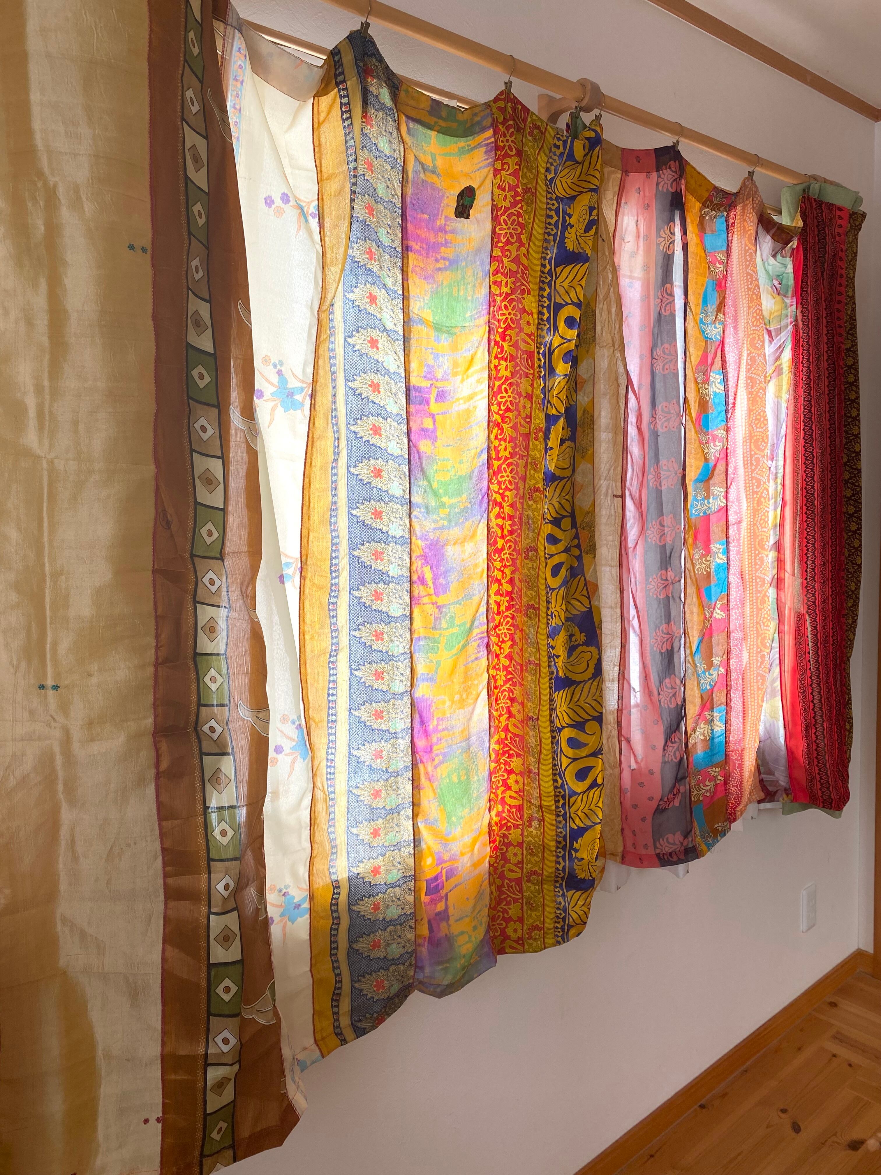 ヴィンテージサリーで出来たパッチワークシルクカーテン