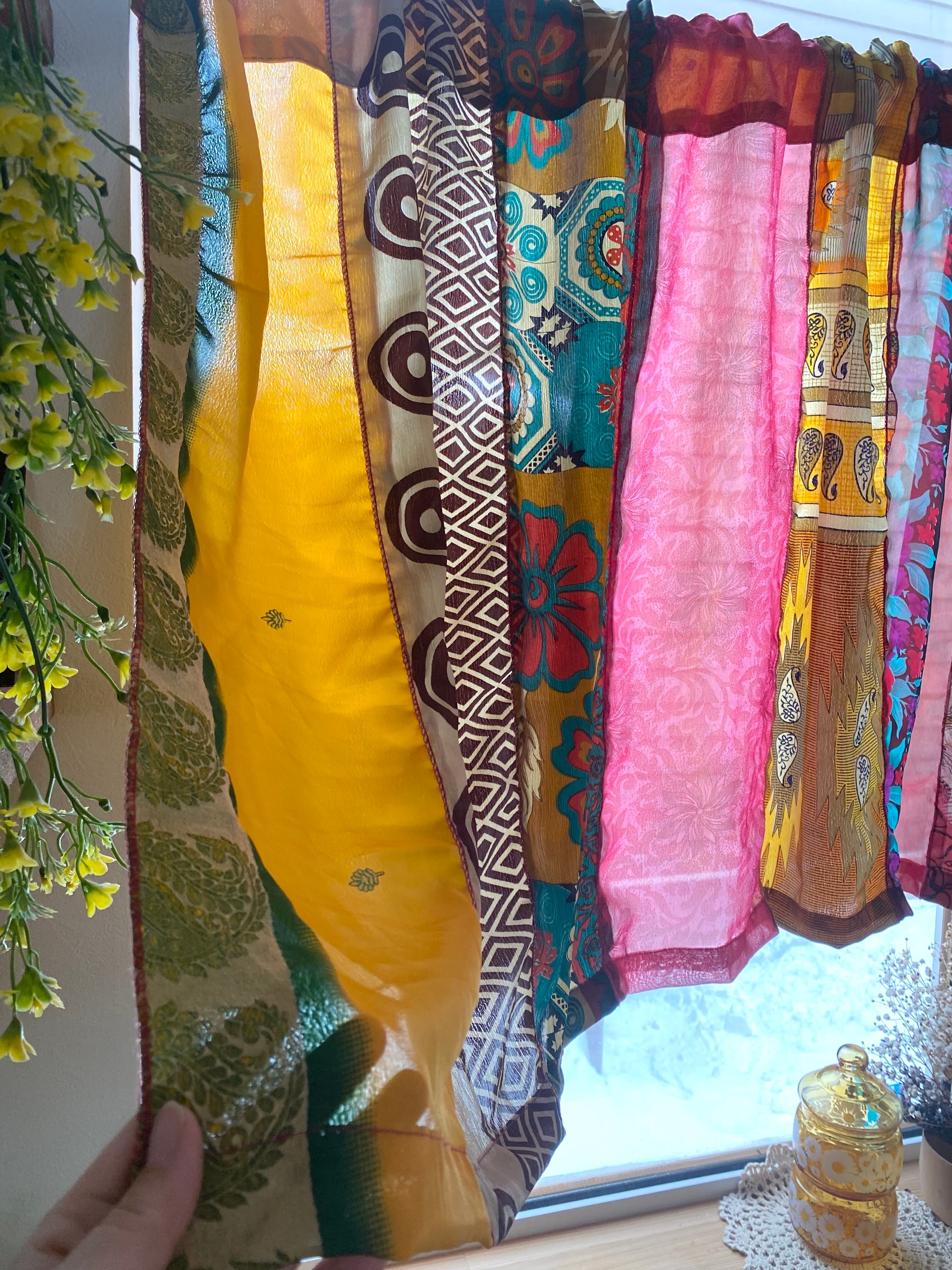 ヴィンテージサリーで出来たパッチワークシルクカーテン