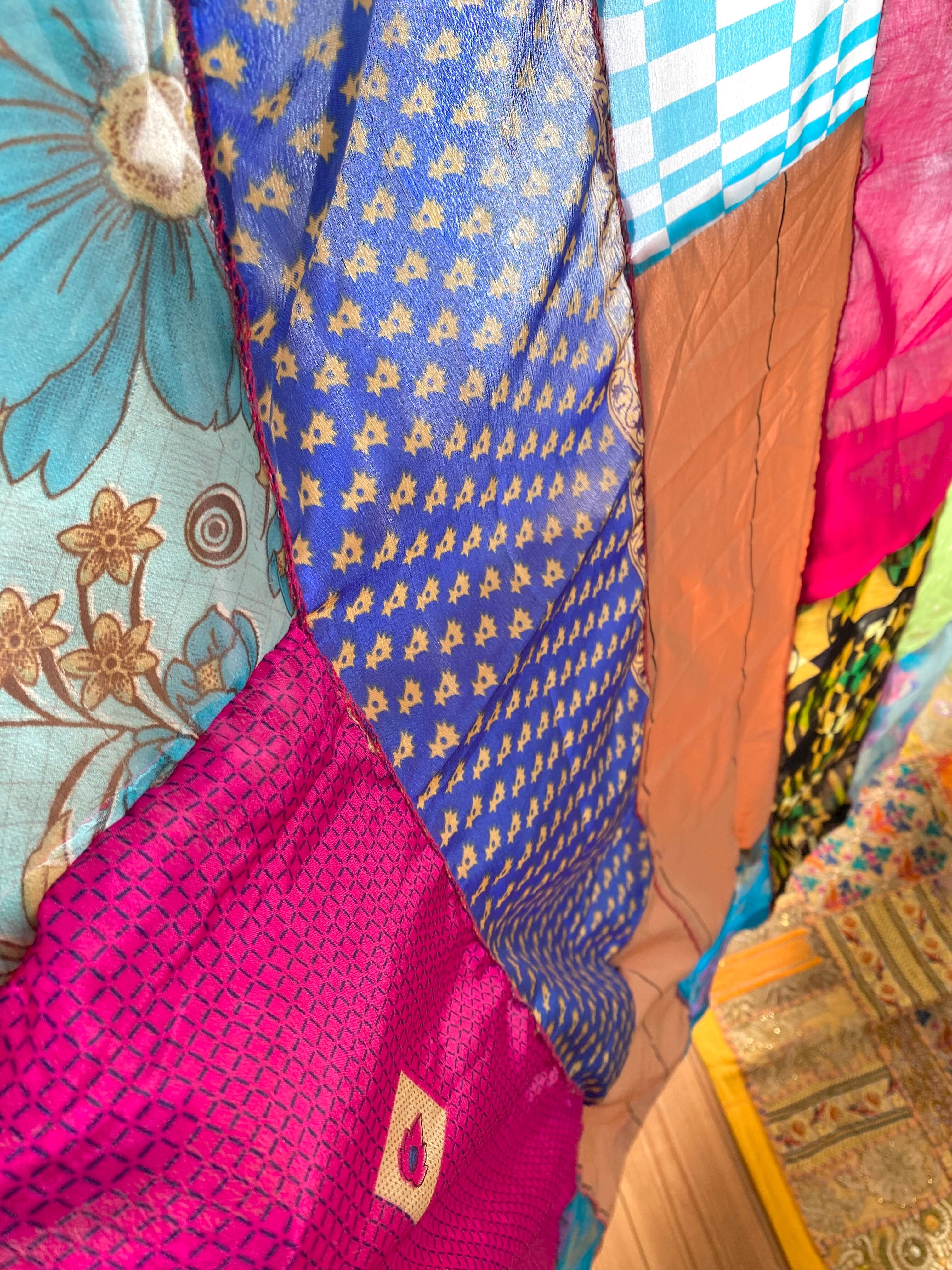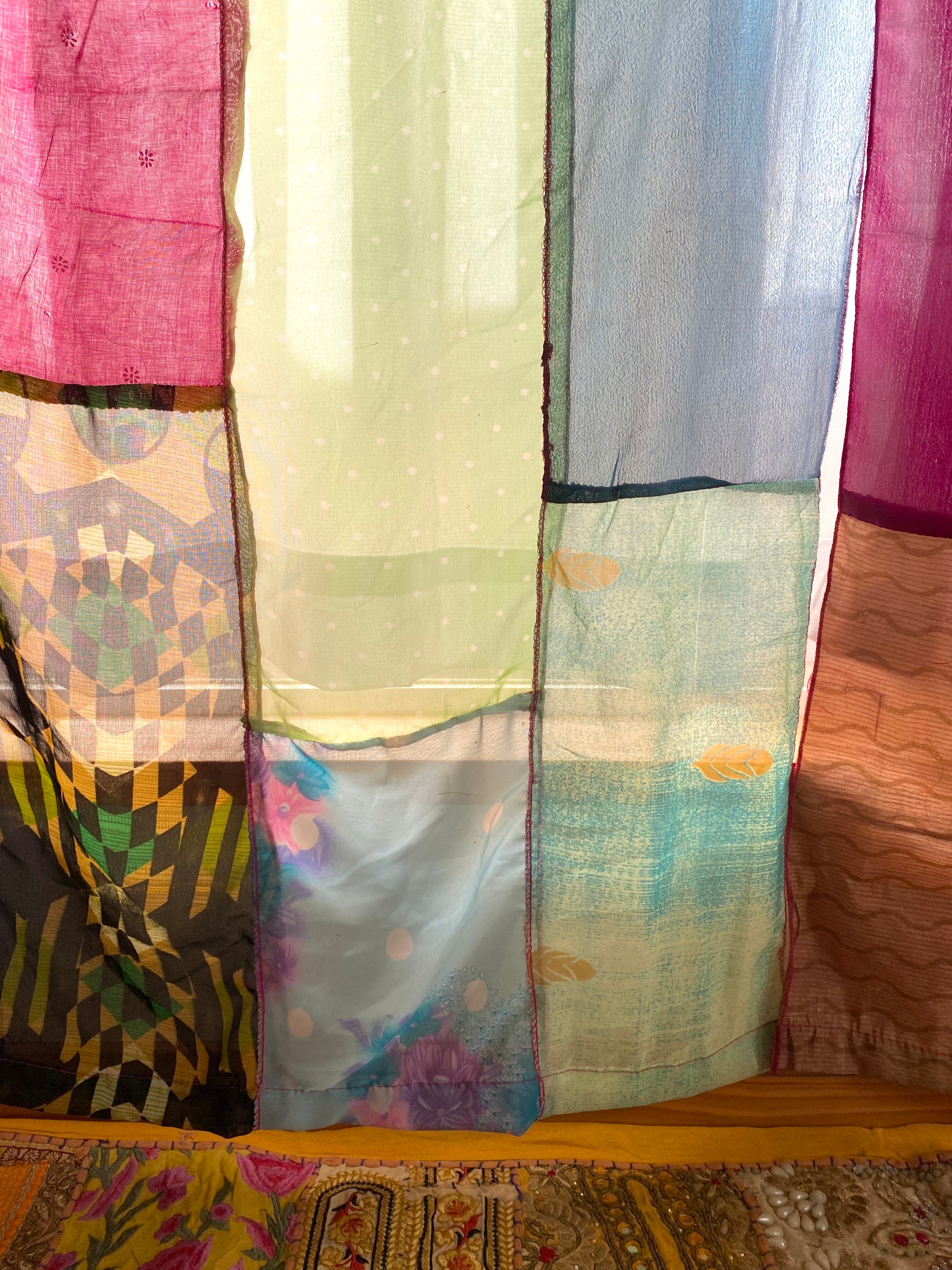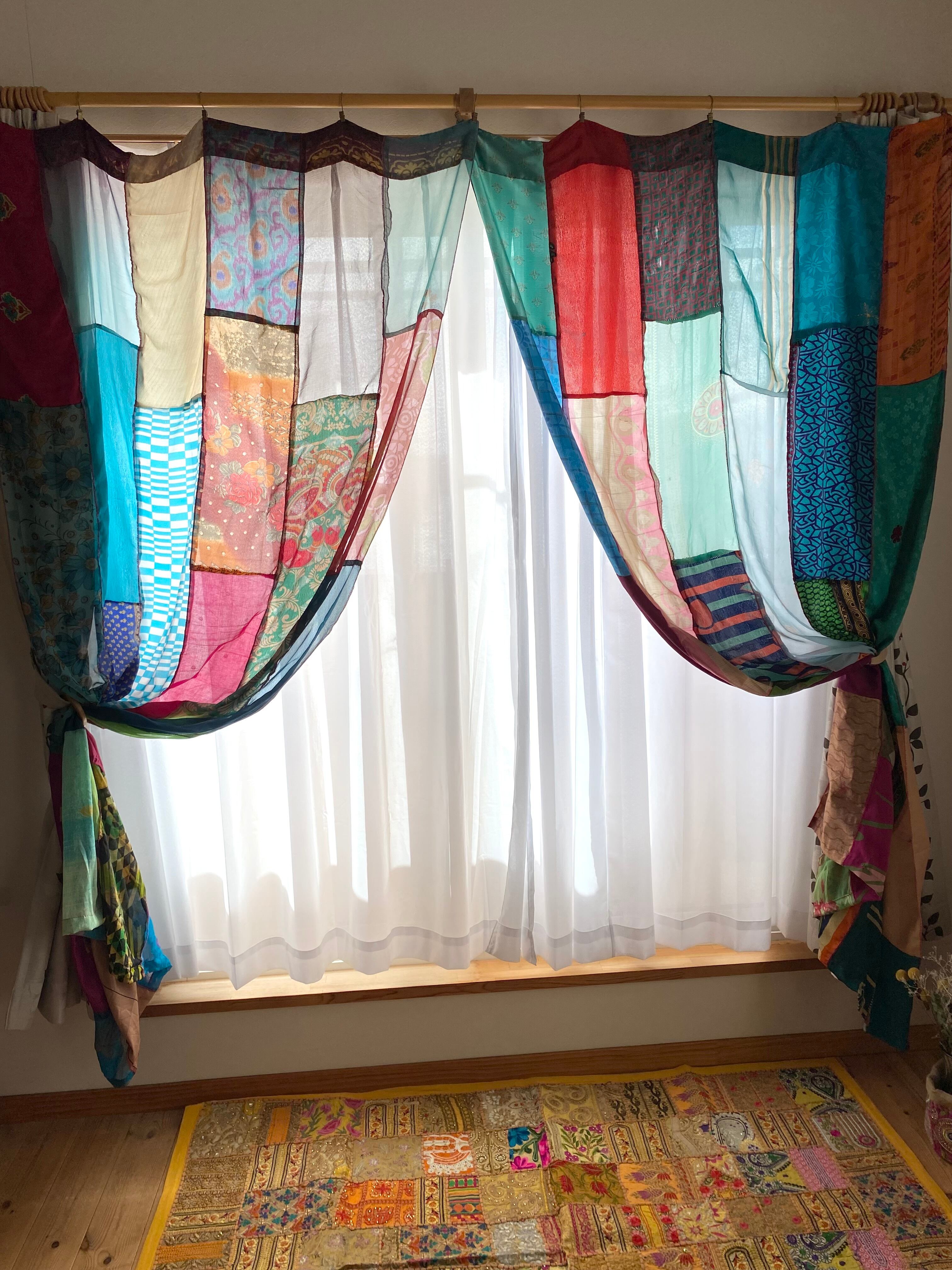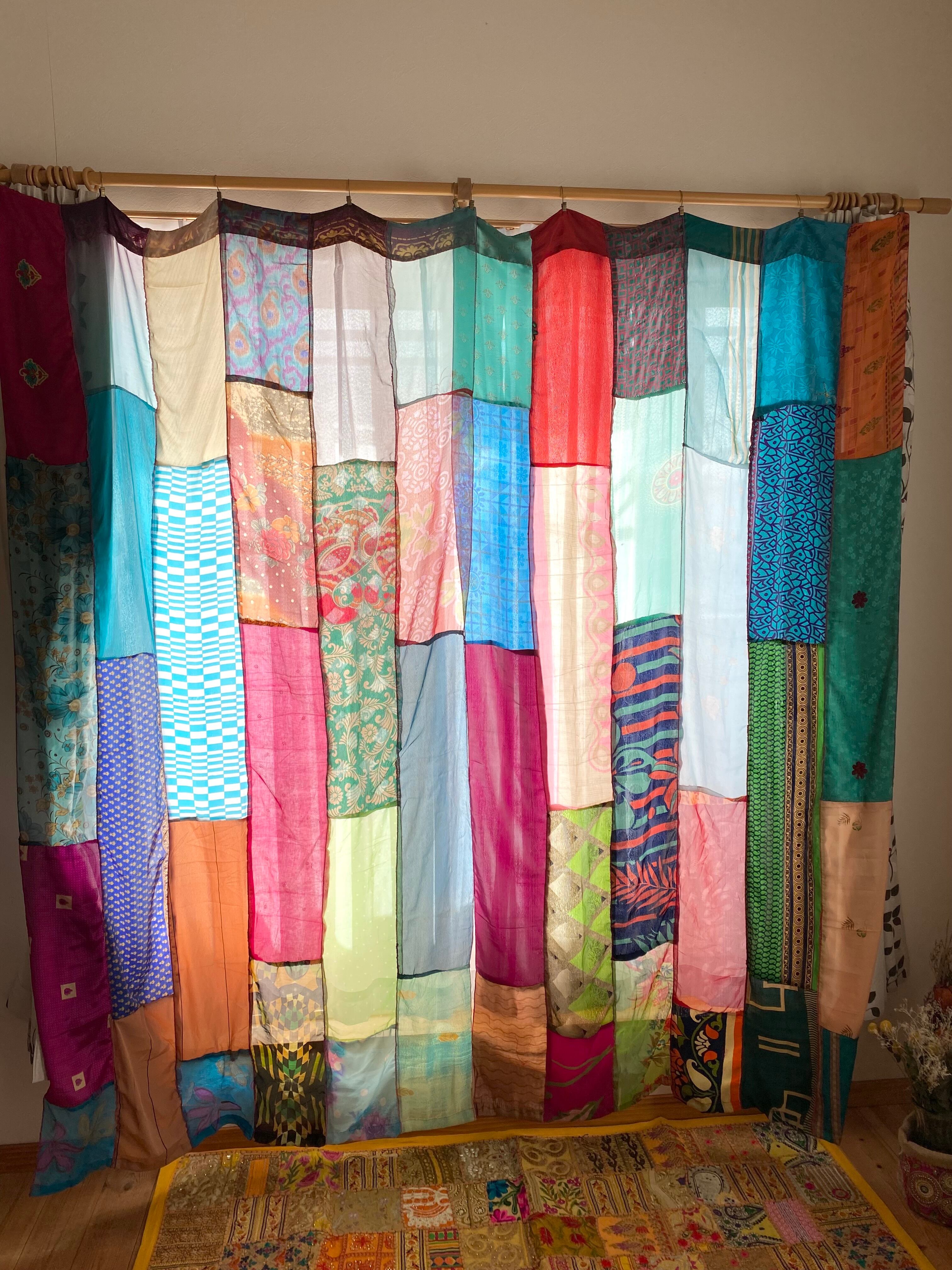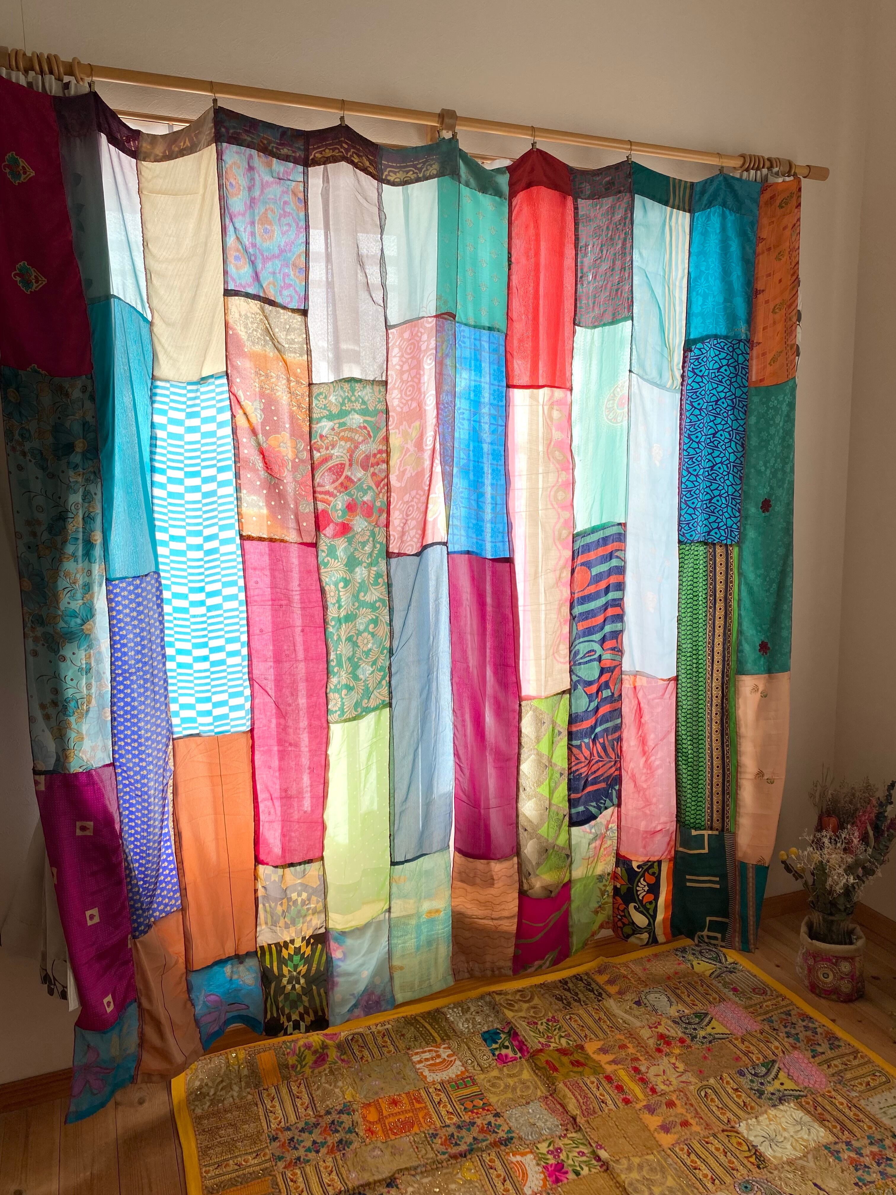 ヴィンテージサリーで出来たパッチワークシルクカーテン
