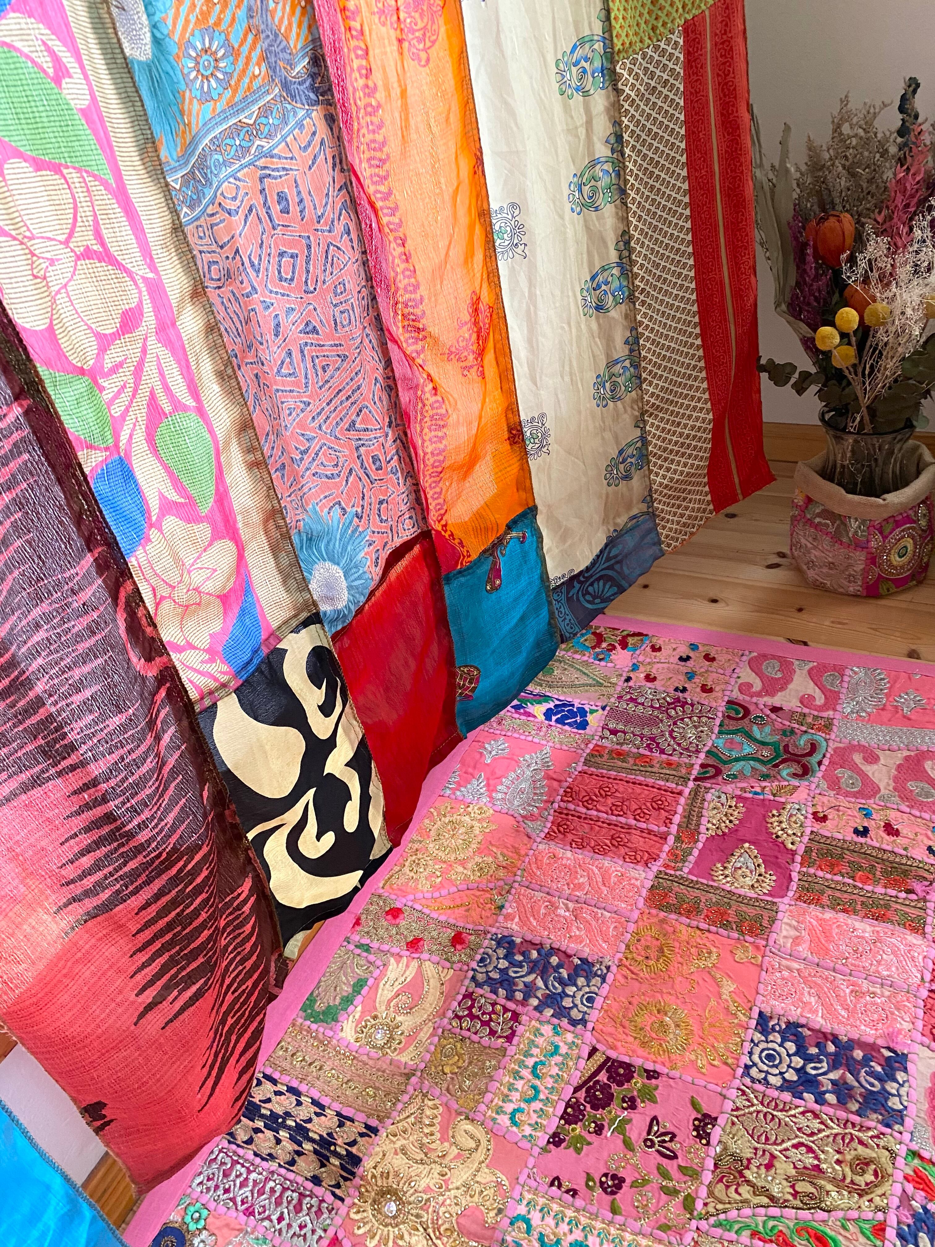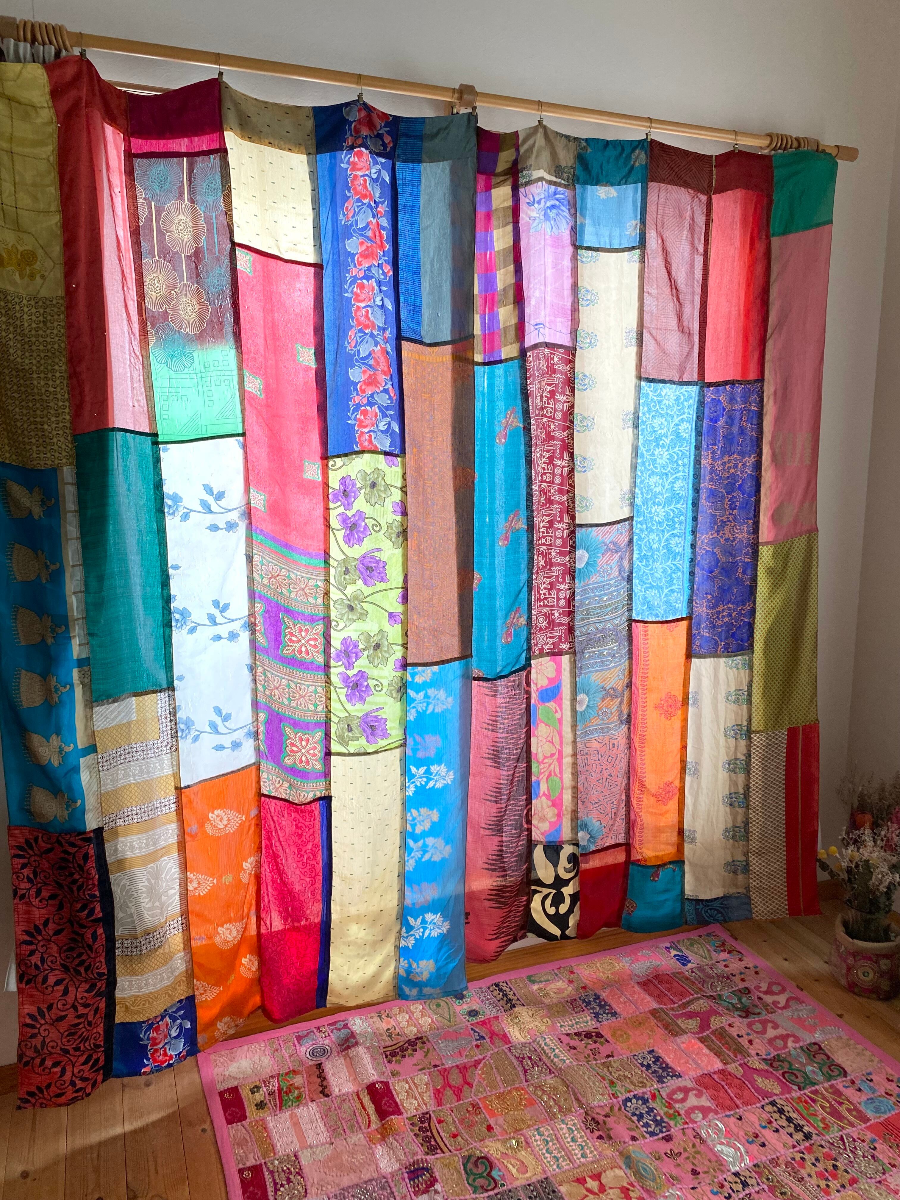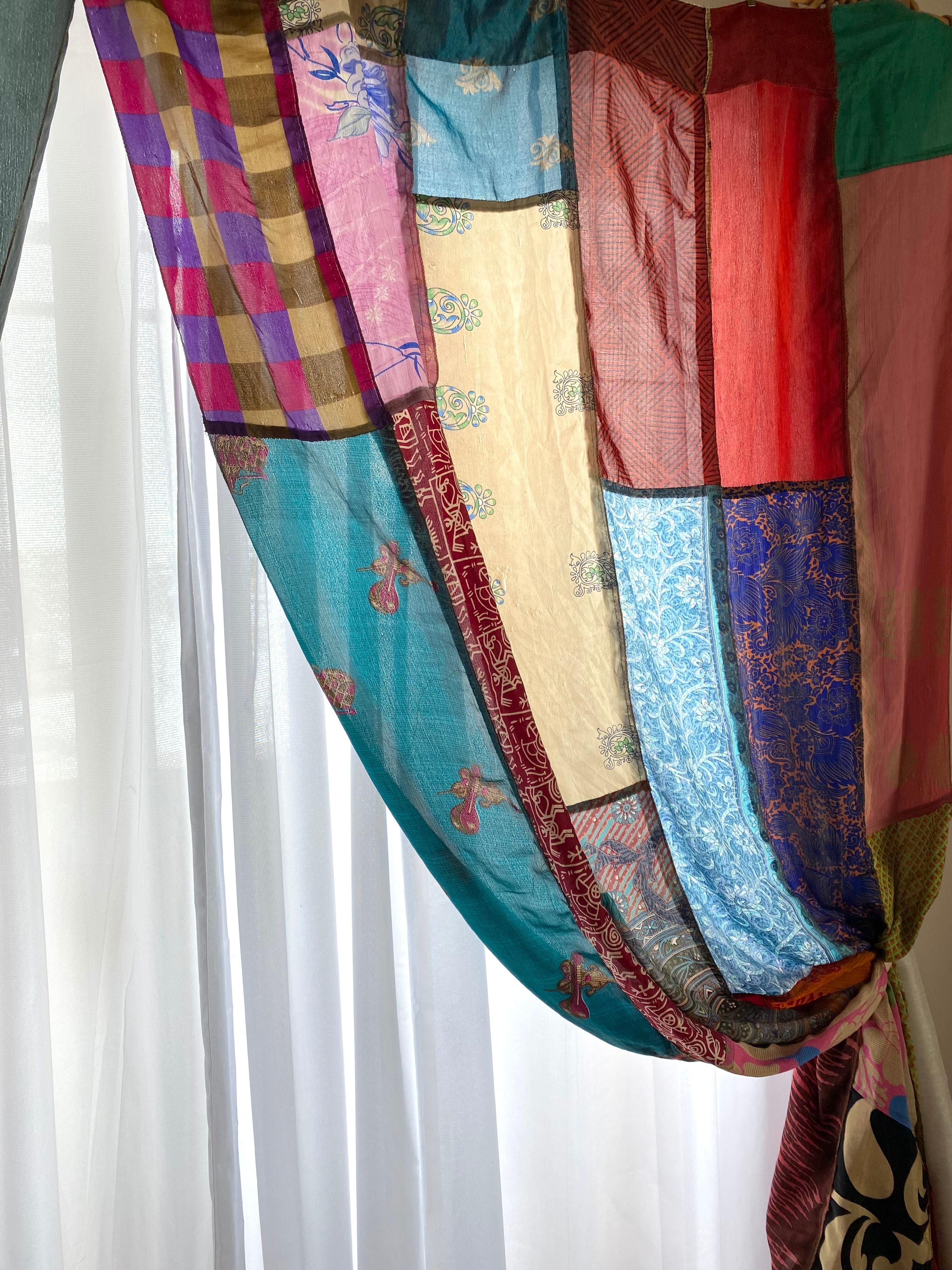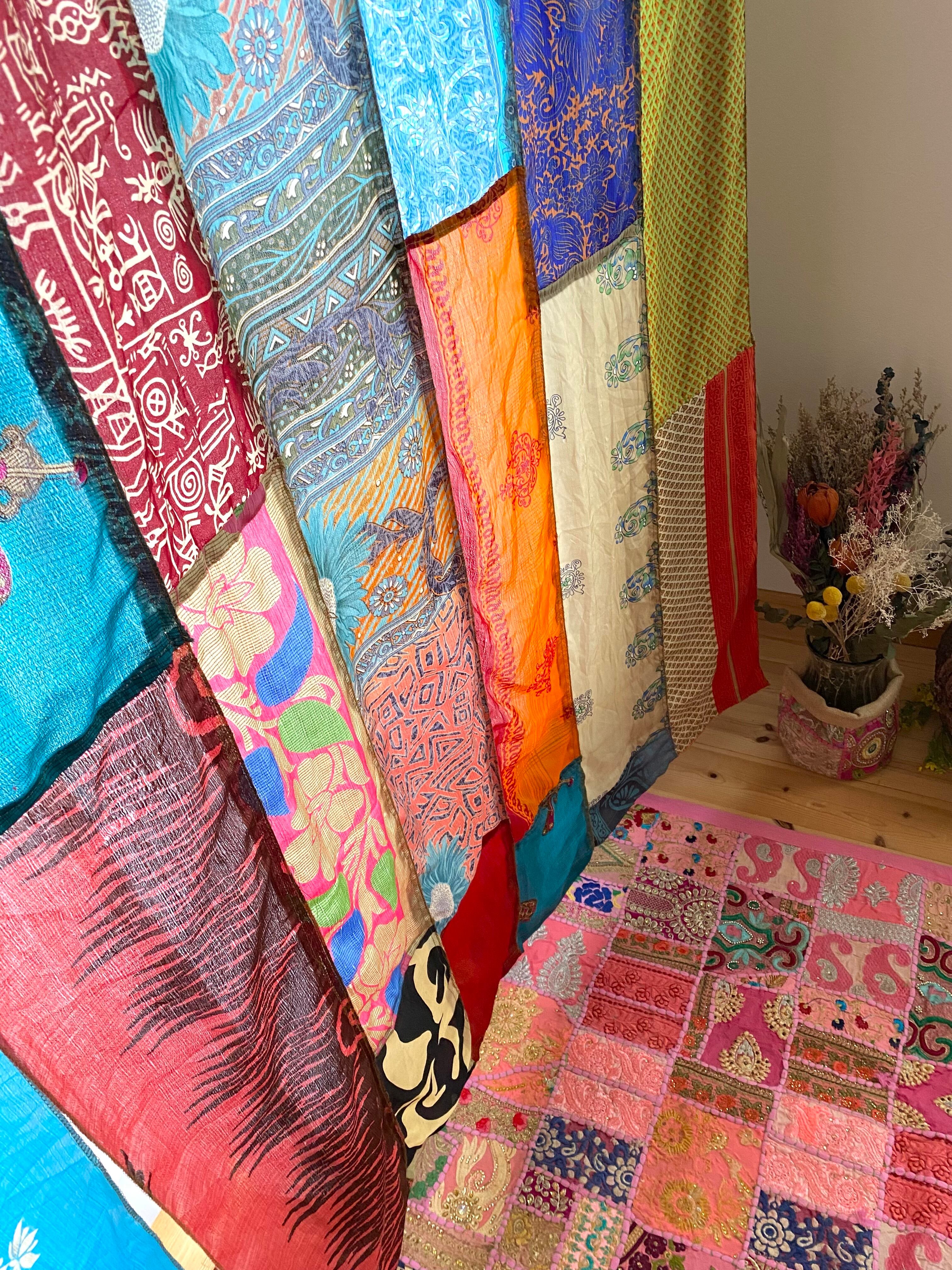 ヴィンテージサリーで出来たパッチワークシルクカーテン