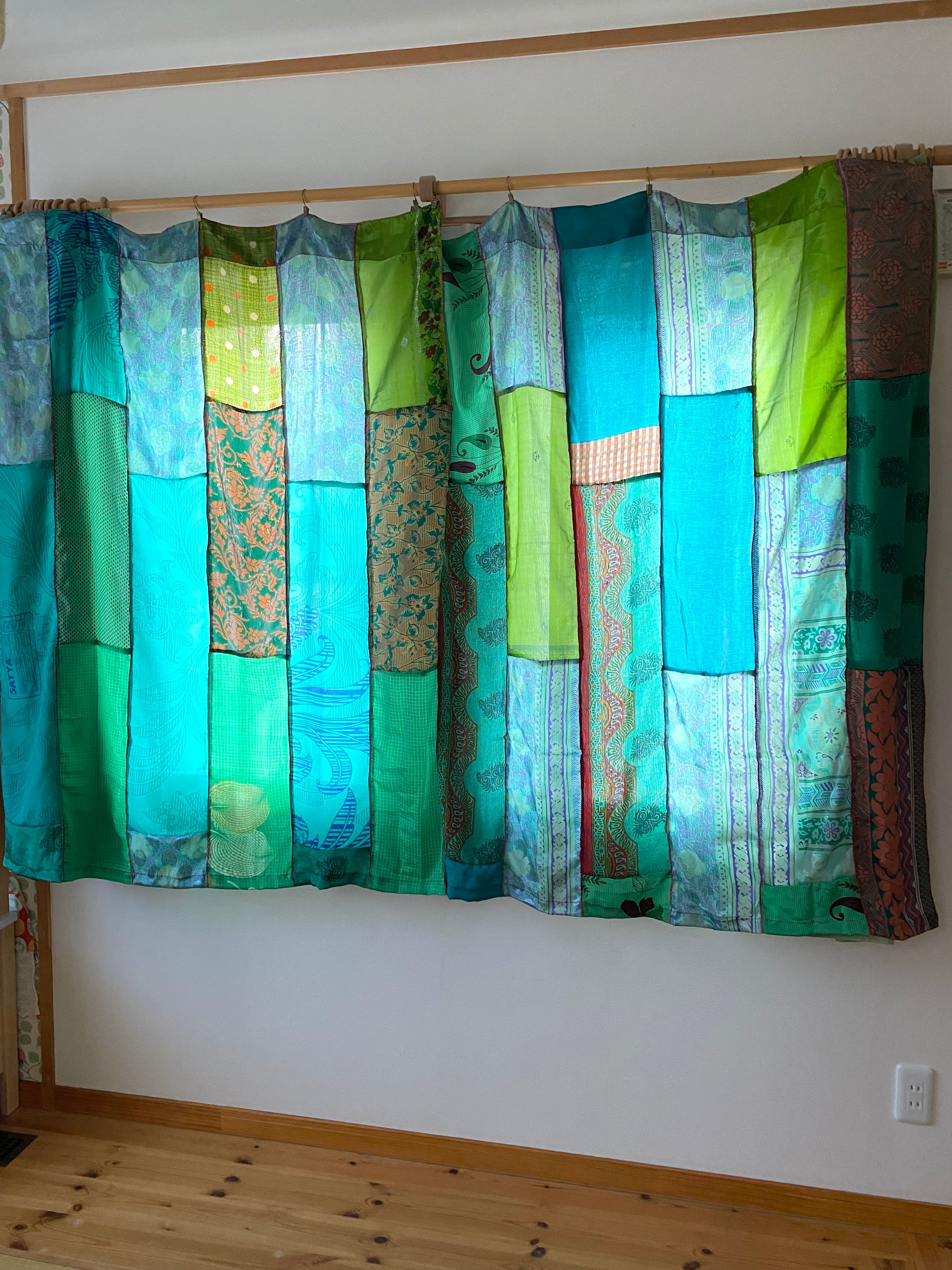 ヴィンテージサリーで出来たパッチワークシルクカーテン